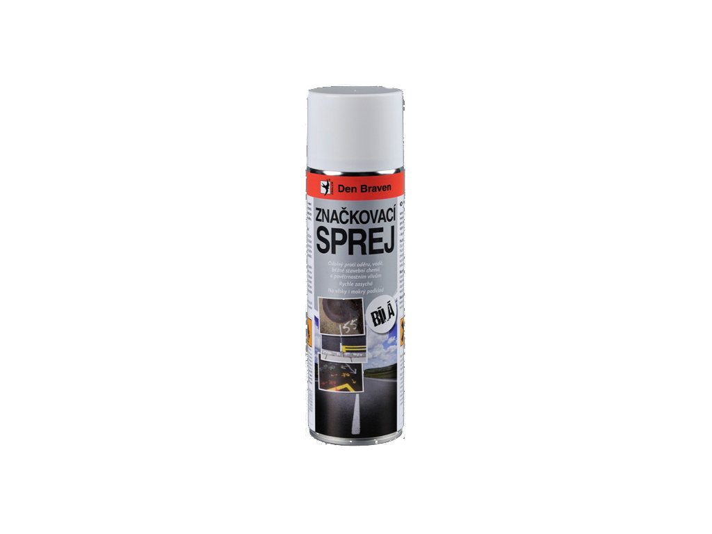 Den Braven - značkovací sprej 500ml - bílýSpeciální nástřiková barva pro značení všeho druhu - vedení inženýrských sítí, vytyčování pro zemní práce, značení napadených stromů a mnoho dalších. Sytá a velmi jasná neprůsvitná barva vhodná na dřevo, kov, beton, asfalt, kámen, zeminu aj. Odolná proti oděru, vodě, běžné stavební chemii a povětrnostním vlivům.