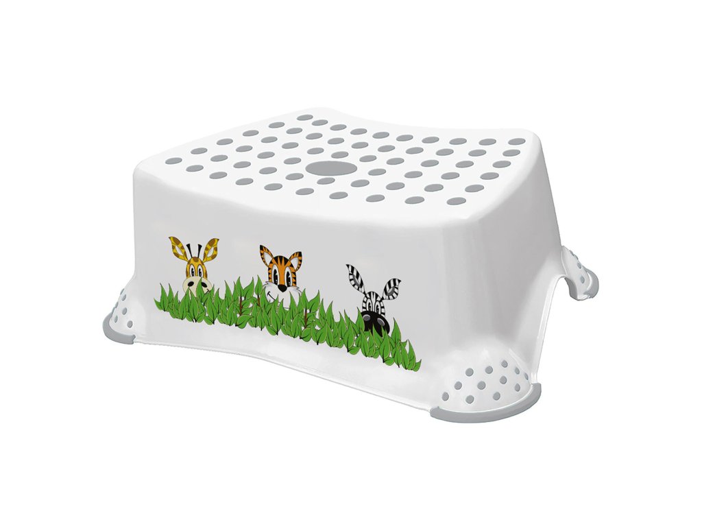 Stolička JUNGLE, 40,5 x 28,5 cm, protiskluzová, PH BÍ. rozměry: 40,5 x 28,5 x 14 cm materiál: plast barva: bílá nosnost: 80 kg Stolička / schůdek JUNGLE je možno použít jako sedátko nebo jako stupínek pro děti. Vhodné využití v koupelně či toaletě, kdy dětem usnadní přístup k těžce dostupným místům. Na spodní i vrchní straně stoličky je protiskluzová úprava, takže je stolička bezpečnější.Obrázky jsou pouze ilustrativní.
