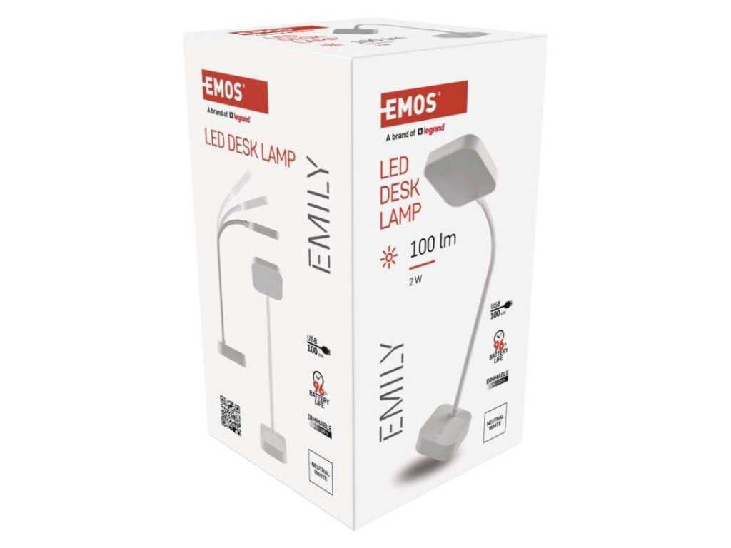LED stolní lampa EMILY, nabíjecí, bílá