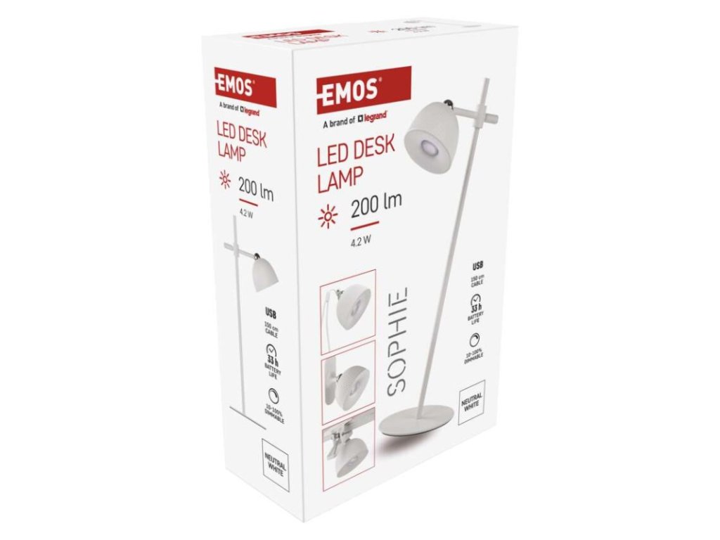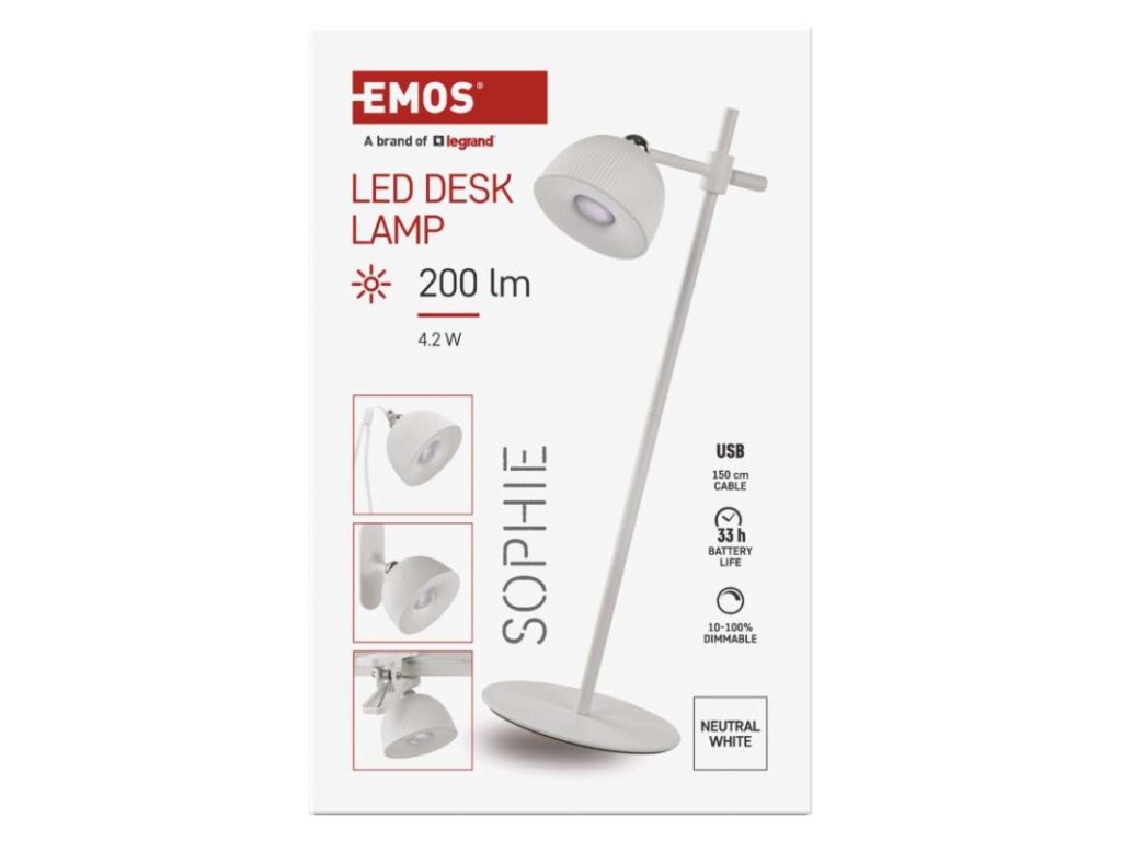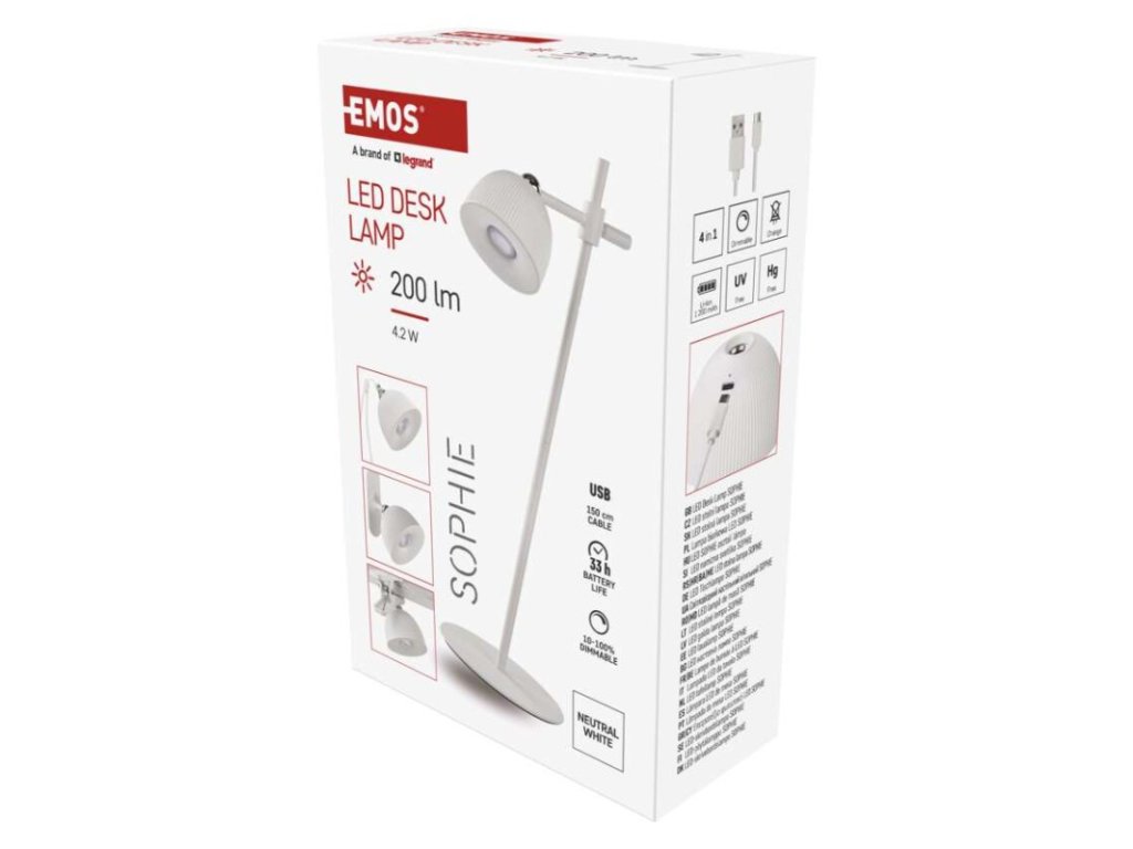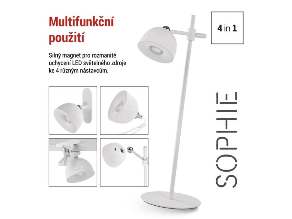 LED stolní lampa SOPHIE, nabíjecí, bílá
