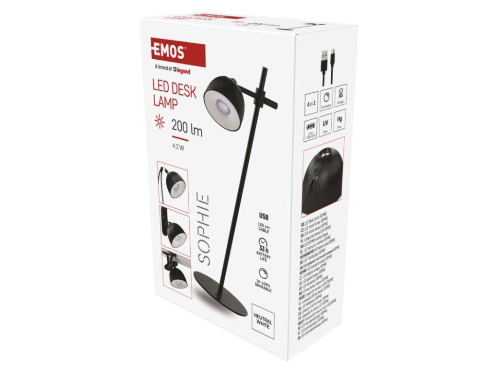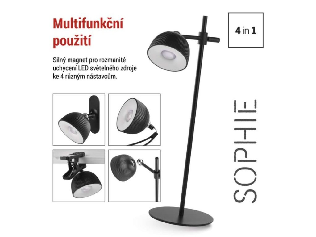 LED stolní lampa SOPHIE, nabíjecí, černá