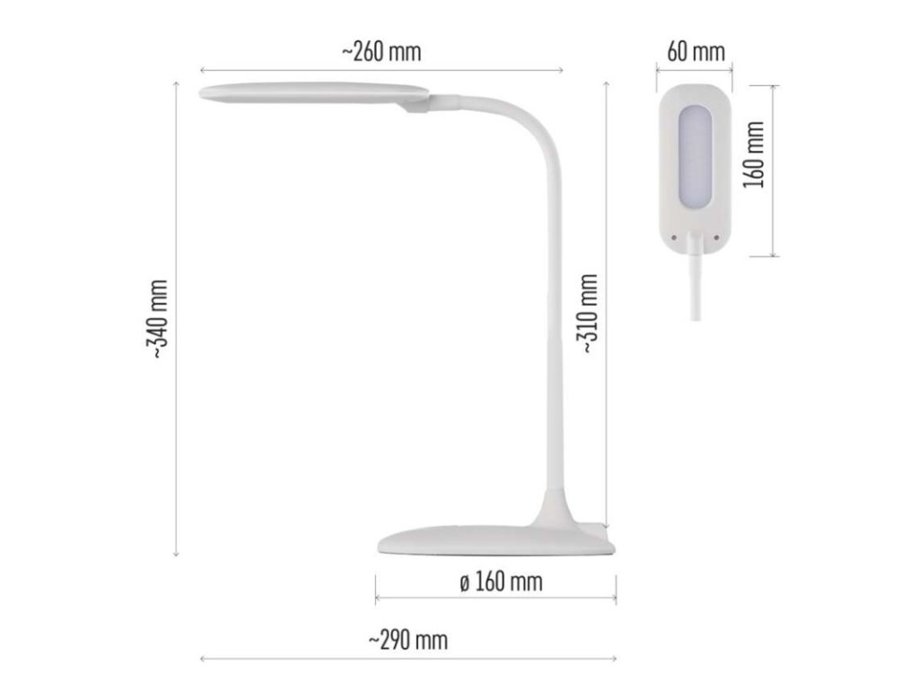barva: bílá|barva světla: neutrální bílá|činitel stárnutí: neuvádí se|čip LED: SMD|délka přívodního kabelu: 1,7 m|energetická třída: A+|energetická třída (od 1.9.2021): neuvádí se|index podání barev (CRI): Ra >80|integrovaná nabíjecí baterie: ne|krytí: IP20|materiál: kov, plast + guma|max. výkon: 6,5 W|napájecí zdroj: 12 V/400 mA|napájecí zdroj součástí balení: ano|napětí: 100–240 V|obsah rtuti: <0 mg|patice (uchycení žárovky): neuvádí se|počet LED: 12|počet spínacích cyklů: 15 000|příkon: 6,5 W|prodejní obal: 1 ks, krabice|rozměr: 160 × 550 × 345 mm|rychlost náběhu na 100 %: 0 s|stmívání: ano|světelný tok: 400 lm|teplota chromatičnosti: 4 000 K|typ napájení: síť|účiník: neuvádí se|USB port: ne|životnost: 30 000 hodinObrázky jsou pouze ilustrativní.