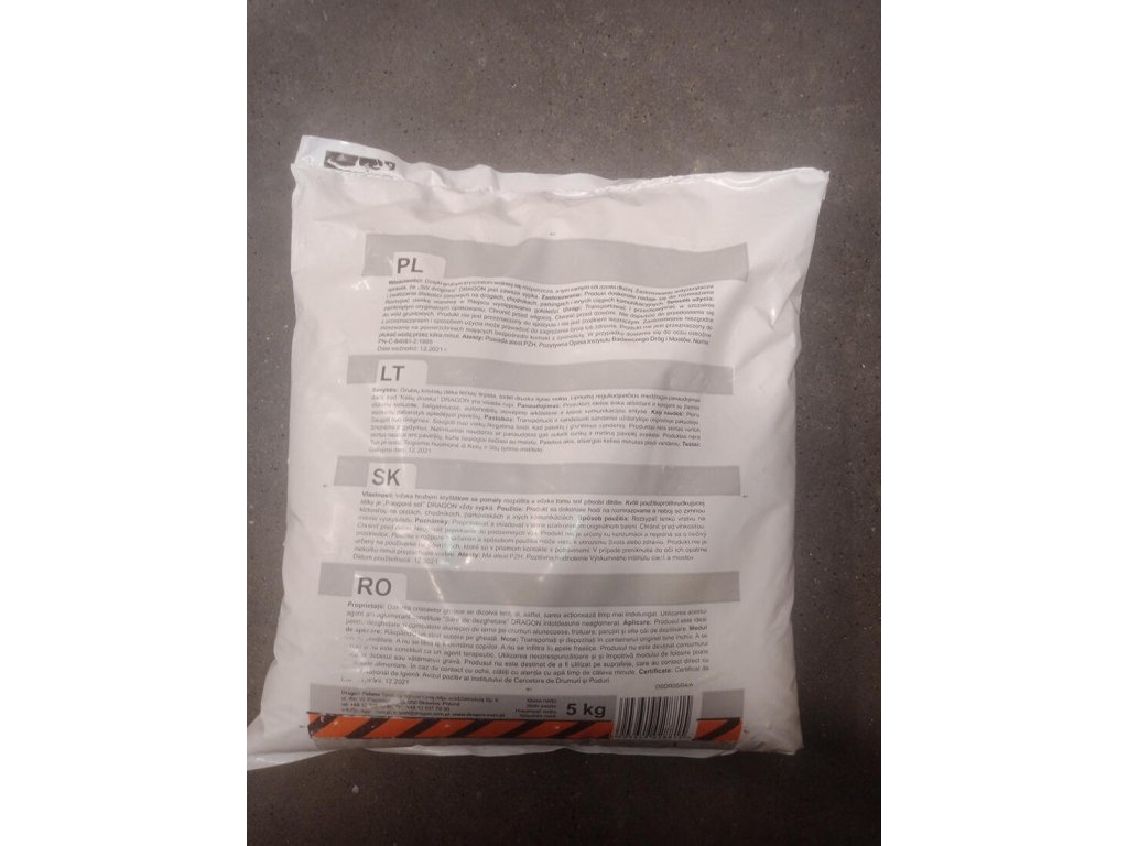 Sůl posypová 5 kg. hmotnost: 5 kg hrubost: 0,63 mm → 20 % 0,2–0,63 mm → 75 % Posypová sůl pro zimní údržbu komunikací.Obrázky jsou pouze ilustrativní.