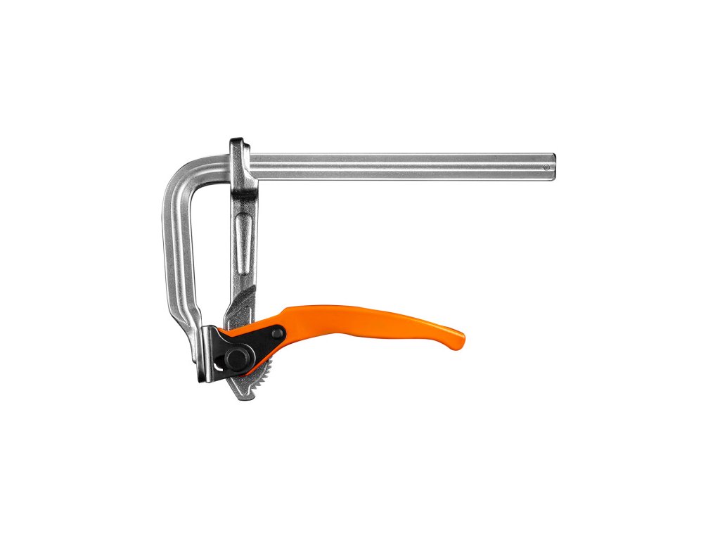 Tesařská tyčová svěrka 200 x 120 mm, excentrická západka, monolitická konstrukce vodicí tyče a horní čelisti svěrky Tesařská svorka NEO (č. 45-220) o délce 200 mm. Usnadňuje upevnění obrobků na stůl a jejich správné sestavení do celku. Má ocelové vedení se zvýšenou tuhostí opatřené drážkami, které usnadňují udržení ramene ve správné poloze. Posuvný ráčnový mechanismus umožňuje rychlé upnutí obrobku. Ergonomická rukojeť ze dvou materiálů umožňuje bezpečný úchop při utahování. Certifikát TÜV Rheinland je zárukou vysoké kvality a spolehlivosti výrobku. Značka NEO splňuje očekávání profesionálů.Vyztužené čelisti - nejvyšší kvylita, monolitické tělo svěrky Systém rychlého uchycení materiáluObrázky jsou pouze ilustrativní.