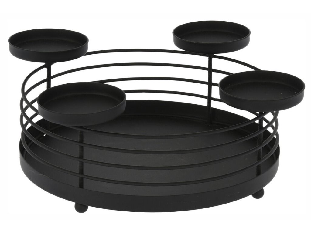 Svícen na 4 svíčky kulatý, pr. 32 x 11 cm, kovový drátěný ČER. průměr: 32 cm výška: 11 cm materiál: černý ocelový drát barva: černá Tento svícen je krásný celoroční doplněk Vašeho interiéru i exteriéru. Navodí tu správnou sváteční atmosféru. Možno dozdobit dekoracemi nebo osvětlením.Obrázky jsou pouze ilustrativní.