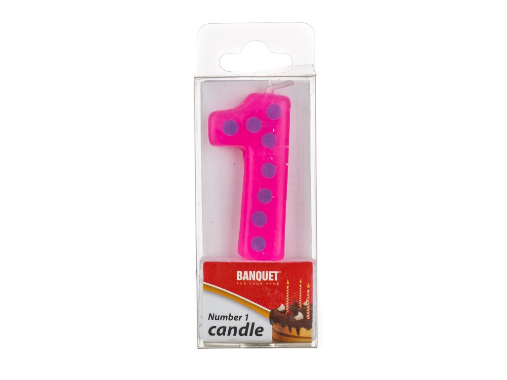 Svíčka narozeninová - číslo 1, velikost svíčky 5 x 3 cm, součástí svíčky je plastový bodec. Výrobek využijete na oslavě, zahradní párty, pikniku apod.Obrázky jsou pouze ilustrativní.
