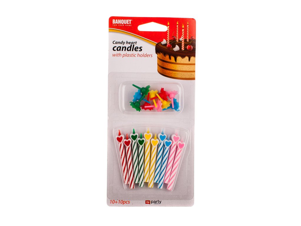 Svíčka narozeninová SRDCE (10 ks) mix barev, MY PARTY. balení: 10 ks mix barev Sada narozeninových svíček se srdíčkem, mix různých barev. Sada obsahuje: 10 ks svíček a 10 ks plastových bodců. Výrobek využijete na zahradní párty, pikniku apod.Obrázky jsou pouze ilustrativní.
