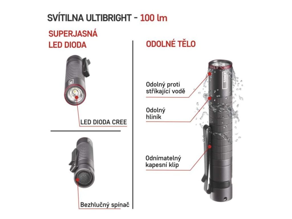 CREE LED kovová svítilna Ultibright 50, 100lm, 1xAAA