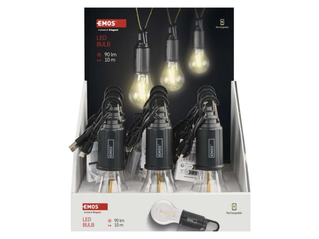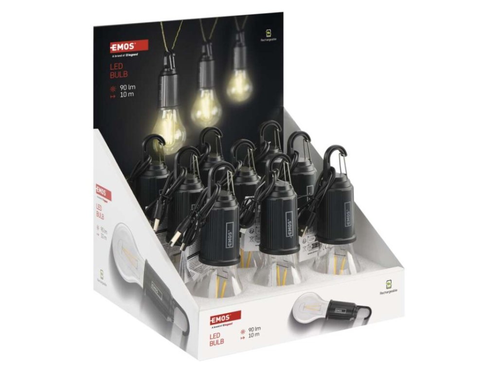 barva: černá|baterie součástí balení: ano|doba nabíjení: 2,5 h|doba svícení: 4,5–6 h|doba svícení detail: LED 100 % – 4,5 h, LED 60 % – 5 h, LED 30 % – 6 h|dosvit: LED 100 % – 10 m, LED 60 % – 7 m, LED 30 % – 5 m|fokus: ne|hmotnost: 53 g|LED indikace nabíjení: ano|LED indikace stavu akumulátoru: ne|materiál: ABS plast|maximální dosvit: 10 m|maximální světelný tok: 90 lm|nabíjecí: ano|napájení: Li-Ion|nárazuvzdornost: ne|počet režimů svícení: 3|příslušenství: USB-C kabel|prodejní obal: 9 ks, display box|režimy svícení: LED 100 %, LED 60 %, LED 30 %|rozměr: 170 × 55 × 55 mm|speciální funkce: funkce ochrany baterie|světelný tok: LED 100 % – 90 lm, LED 60 % – 60 lm, LED 30 % – 30 lm|typ baterie: 400 mAh|typ napájecího konektoru: USB-C|voděodolnost: ano (IP44)|vybavení: 1× hák|záruční doba: 2 roky|zdroj světla: 2× LED|značka: EMOSObrázky jsou pouze ilustrativní.