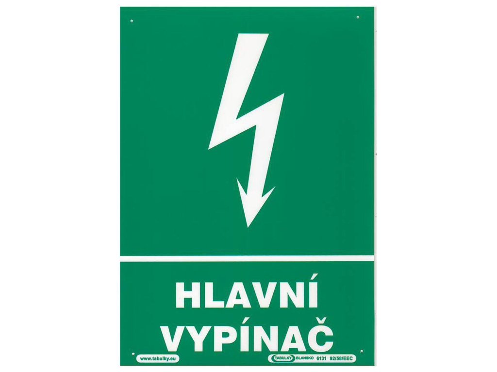 Tabulka - HLAVNÍ VYPÍNAČ 210 x 297 mm, (A 4), PH. rozměry: 210 x 297 mm materiál: plast Bezpečnostní tabulka, jejímž účelem je opatření a snížení rizik.Obrázky jsou pouze ilustrativní.