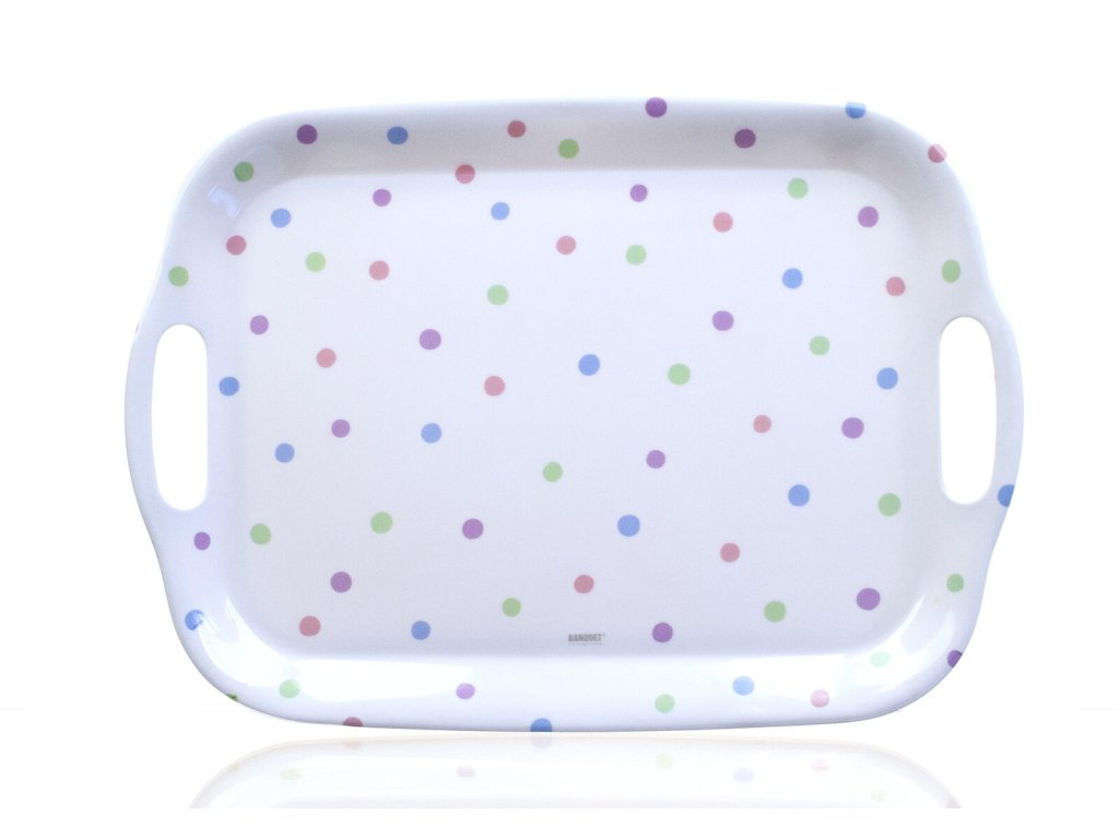 Tác 36 x 25,5 cm, PUNTO, s uchy, melamin. rozměry: 36 x 25,5 cm materiál: melamin Melaminový tác PUNTO je výborným pomocníkem k přenášení více potravin a nápojů najednou. Nádobí se vyrábí z melaminové pryskyřice, která je velmi odolná. Melaminové nádobí je lehké a snadno se s ním manipuluje. Není vhodné do myčky na nádobí.Obrázky jsou pouze ilustrativní.