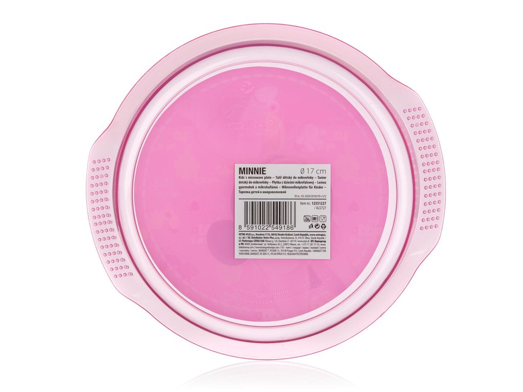 Talíř dětský 17 cm, MINNIE, PH. průměr: 17 cm materiál: plast motiv: Mickey Mělký talíř MINNIE udělá určitě radost každému dítěti. Výhodou plastového nádobí je dobrá omyvatelnost, která zaručí maximální pohodlí při úklidu. Vhodný do mikrovlnky.Obrázky jsou pouze ilustrativní.
