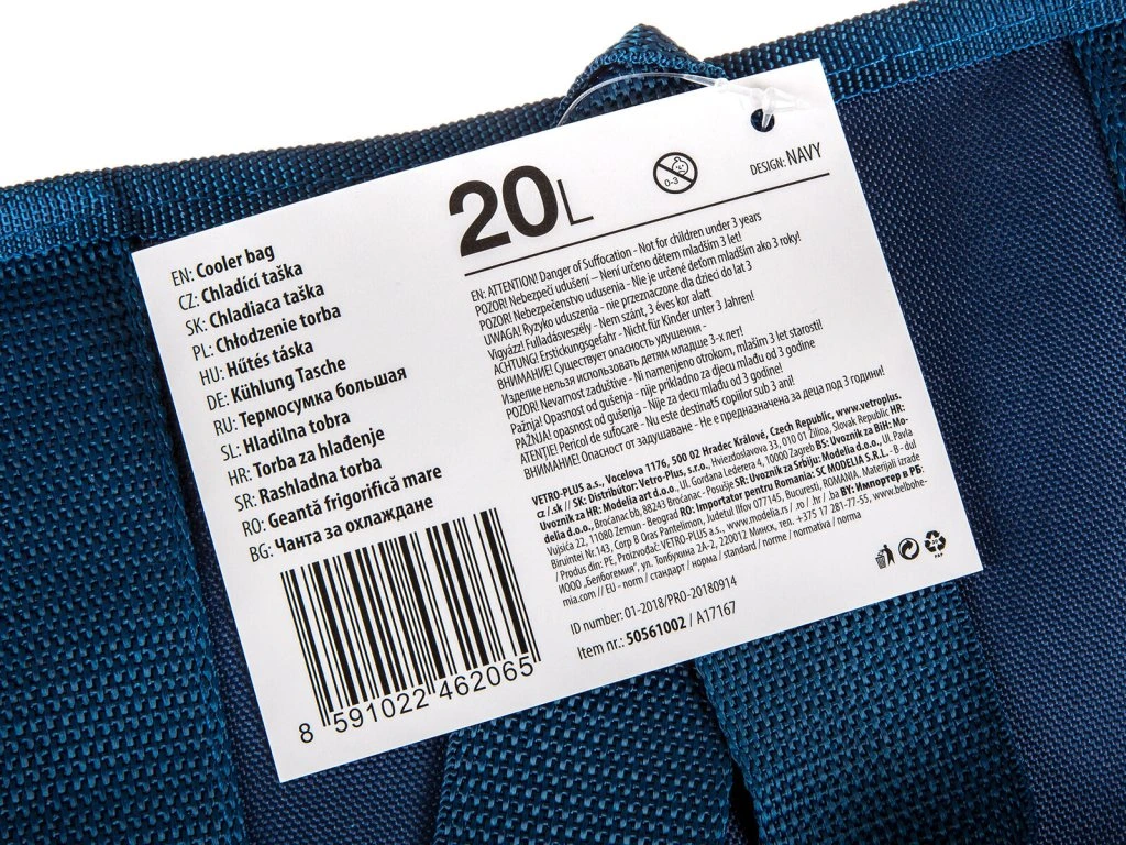 Taška chladicí NICE, 20 l, NAVY. objem: 20 l rozměry (š x h x v): 34 x 17 x 34 cm dekor: NAVY Chladící taška slouží k uchování potravin v chladu, je ideální na pláž, piknik, kempování, v domácnosti. Vnější materiál je vysoce odolný polyester, vnitřní materiál je izolační vrstva PE pěna. Vnitřní hladké stěny umožňují velmi snadnou údržbu a očištění v případě znečištění potravinami. Dodávána v námořnicky modré barvě s bílými pruhy.Obrázky jsou pouze ilustrativní.