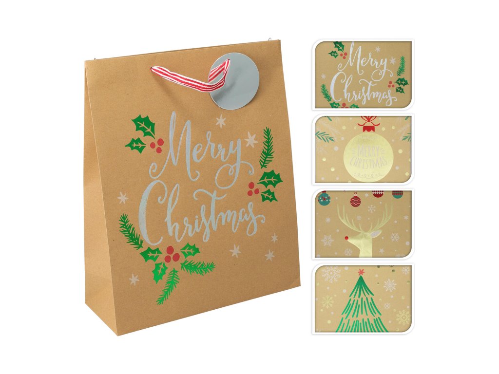 Taška dárková 32 x 26 x 10 cm, (L), VÁNOČNÍ, mix dekorů. rozměry (V x Š x H): 32 x 26 x 10 cm velikost L materiál: papír mix 4 dekory Dárková papírová VÁNOČNÍ taška s atraktivním designem a pevným uchem, je tou nejlepší schránkou pro uložení Vašich dárkůObrázky jsou pouze ilustrativní.