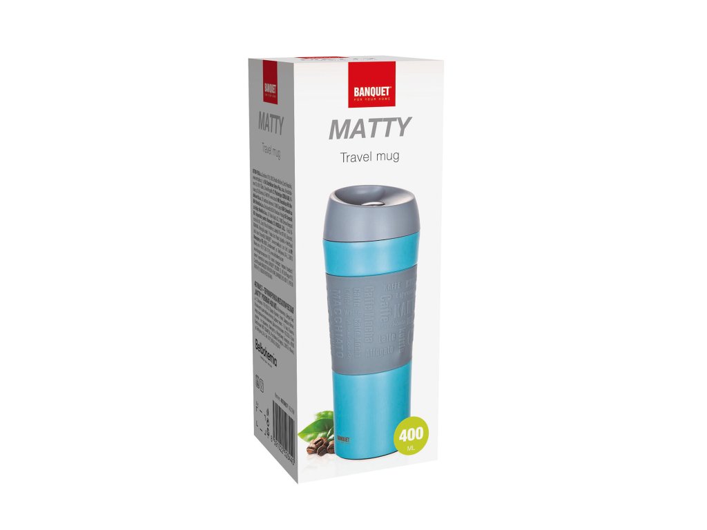 Termohrnek 400 ml MATTY, nerez / silikon, MO. objem: 400 ml materiál: vnější část - nerez 201, vnitřní část - nerez 304 silikonový rukáv barva: modrá Dvoustěnný cestovní hrnek MATTY je vhodný na teplé i studené nápoje.Obrázky jsou pouze ilustrativní.
