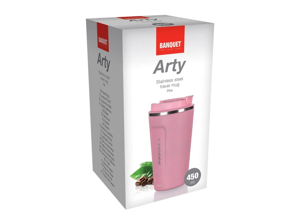 Termohrnek 450 ml, ARTY, nerez / PH RŮŽ. objem: 450 ml horní průměr: 9 cm dolní průměr: 7 cm výška: 16 cm materiál: nerez, plast, silikon barva: růžová Dvoustěnný cestovní termohrnek ARTY v růžové barvě, je vhodný na teplé i studené nápoje. Vnější část je vyrobena z nerezu 201, vnitřní část z nerezu 304 a víčko z plastu. Využitelný objem je 450 ml. Tělo hrnku je vakuové, udrží nápoje déle horké či studené. Víčko není nepropustné, doporučujeme uchovávat ve svislé poloze.Obrázky jsou pouze ilustrativní.