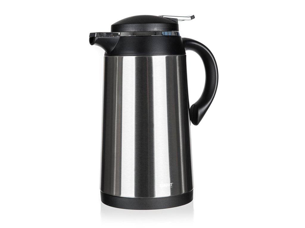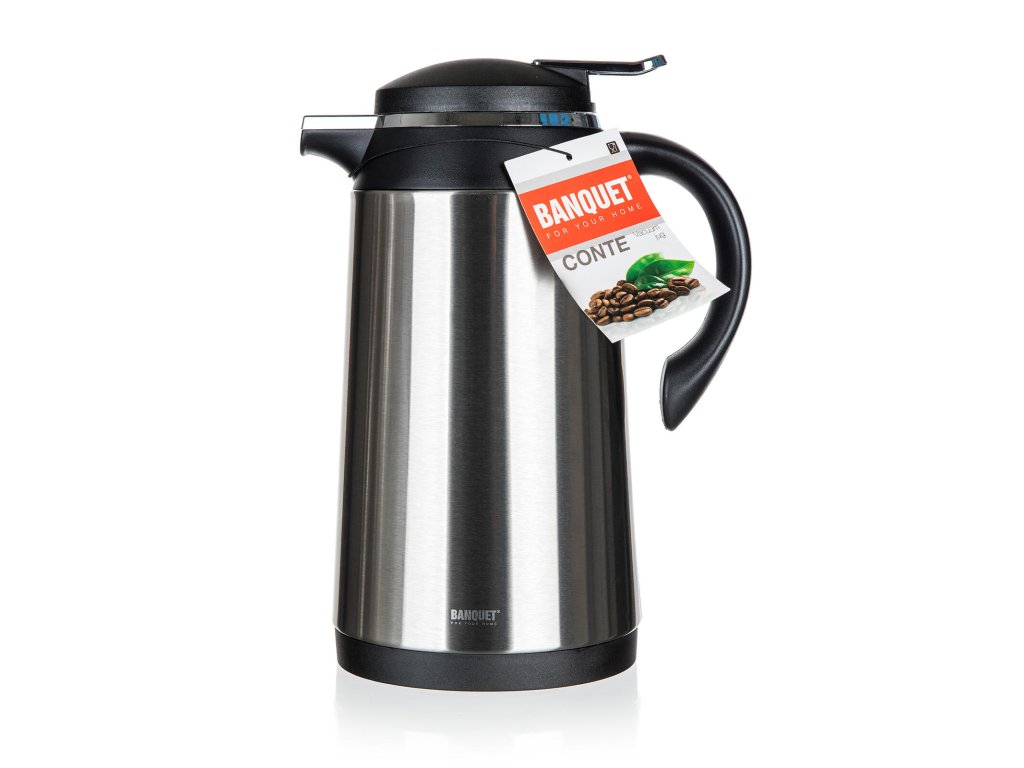 Termokonev CONTE 1 l, nerez + PH. objem: 1 l průměr: 13 cm výška: 26 cm mateirál: povrch nerez / plast PP / pochromovaný ABS plast, silikonové těsnění, vnitřní část skleněná Termokonvice CONTE s potiskem má skleněnou termoizolační vložku a vnější část je vyrobena z kovu a plastu. Termokonvice je vhodná pro teplé i studené nápoje.Obrázky jsou pouze ilustrativní.