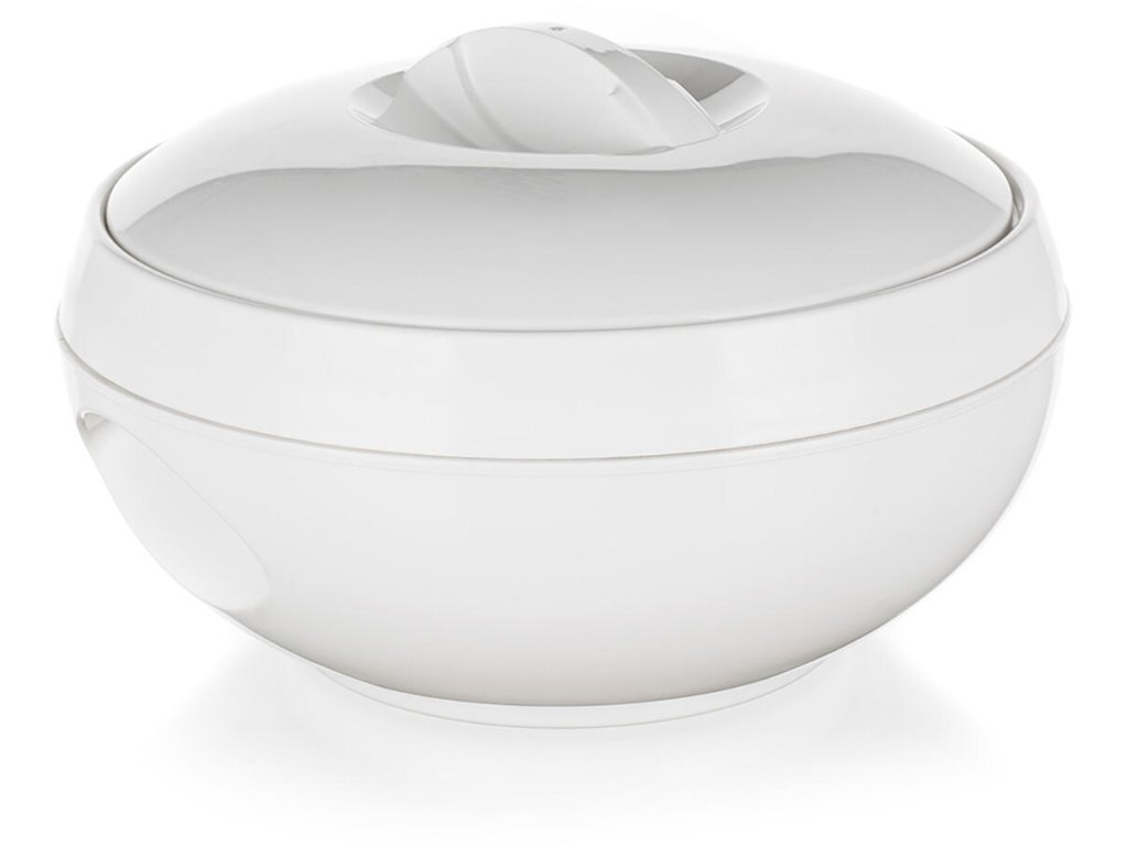 Termomísa AVANZA 5 l, BÍ. objem: 5 l barva: bílá Termomísa je praktická pro uchovávání teplých pokrmů. Ocení ji hlavně kuchaři a kuchařky při uskladnění hotových pokrmů před samotným servírováním. Vnitřek mísy tvoří nerezová vložka, výplň mezi stěnami je z PUR pěny pro zachování vynikající izolace při skladování či přenášení potravin.Obrázky jsou pouze ilustrativní.