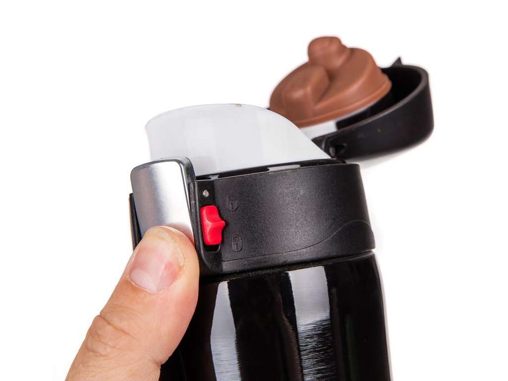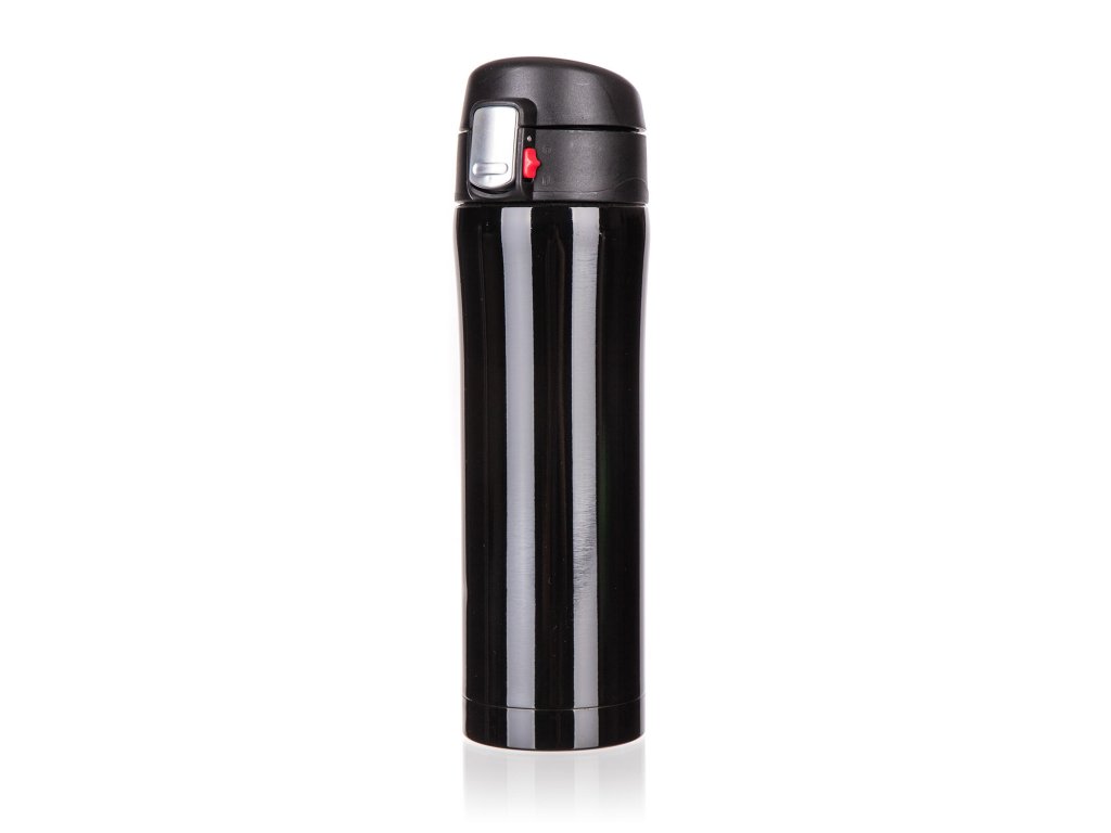 Termoska 0,43 l BODO, nerez, ČER. objem: 0,43 l materiál: nerez barva: černá Cestovní termoska BODO má vnější i vnitřní povrch z nerezu a plastové vyklápěcí víčko. Díky dvoustěnnému provedení si udrží nápoj déle svou teplotu. Víčko se otevírá stisknutím pojistky, u které je zámek zabraňující nechtěnému otevření termosky.Obrázky jsou pouze ilustrativní.