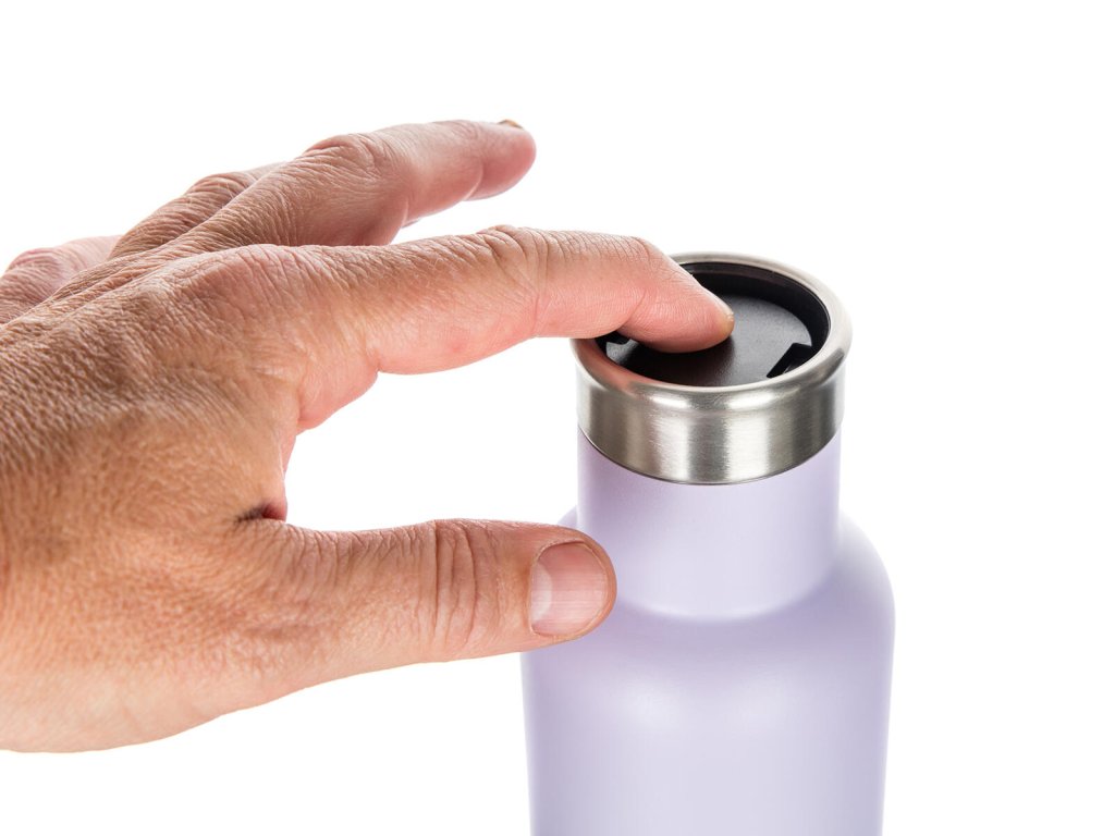 Termoska 0,45 l, CALA, nerez LILA. objem: 0,45 l materiál: nerez, plastové víčko barva: lila Dvoustěnná cestovní termoska CALA je vhodná na teplé i studené nápoje. Vnější část je vyrobena z nerezu 201, vnitřní část z nerezu 304 a víčko z plastu. Tělo termosky je vakuové, udrží tak nápoje déle horké či studené. Doporučujeme uchovávat ve svislé poloze. Ve víčku je kulatá pojistka - termo-bezpečnostní uzávěr,díky kterému je možné nalévání nápoje bez odšroubování víčka, stačí jednoduše zatlačit pojistku.Obrázky jsou pouze ilustrativní.