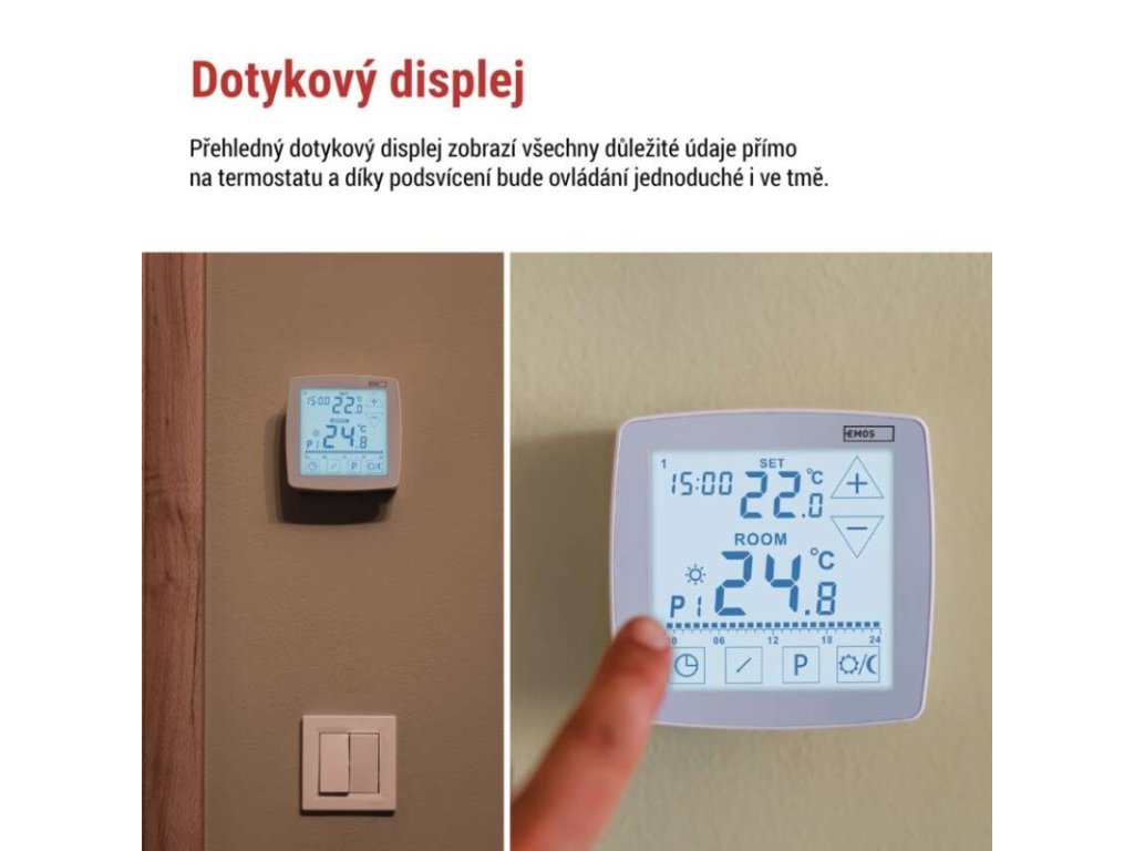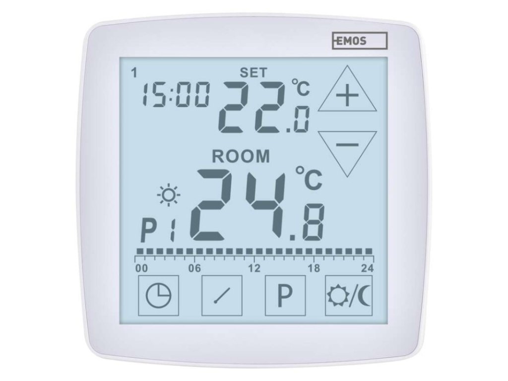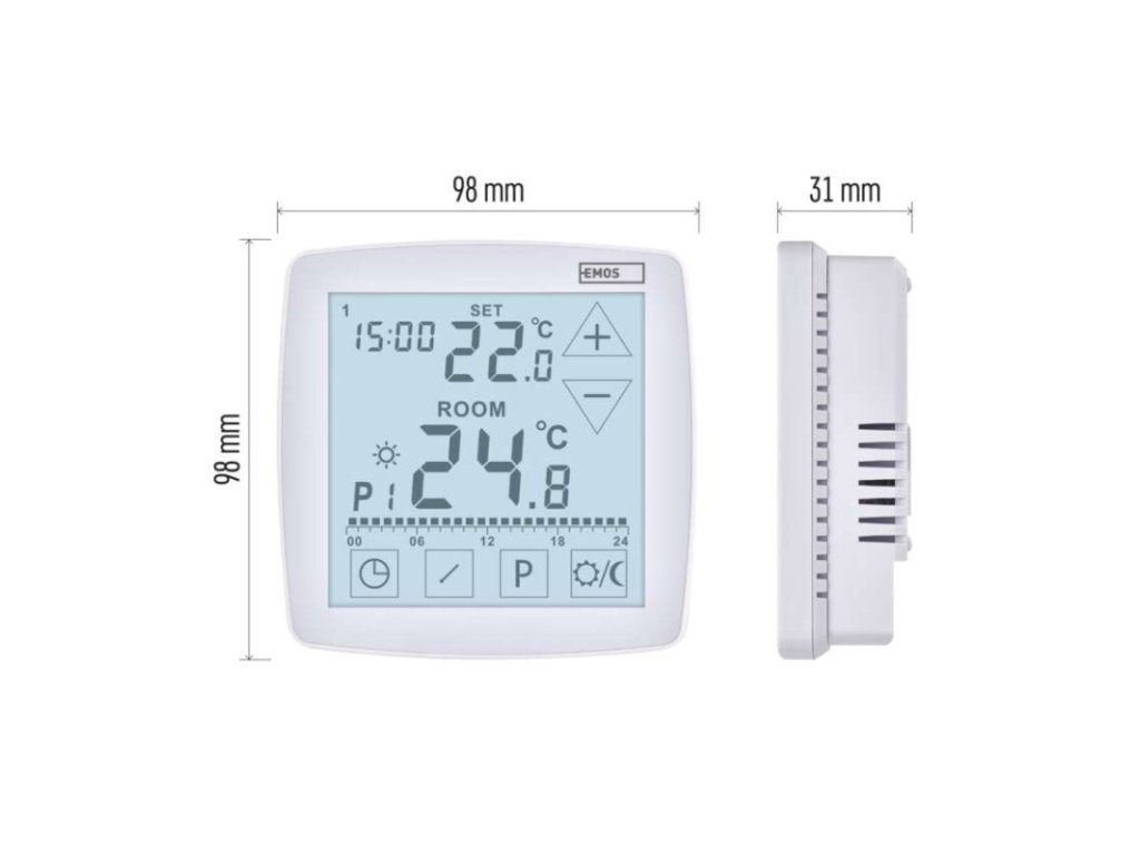 | typ ovládání: | programovatelný elektronický pokojový termostat |