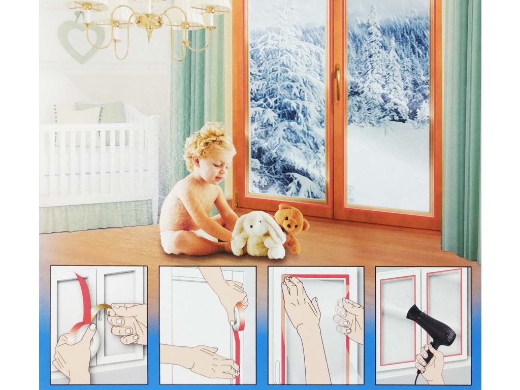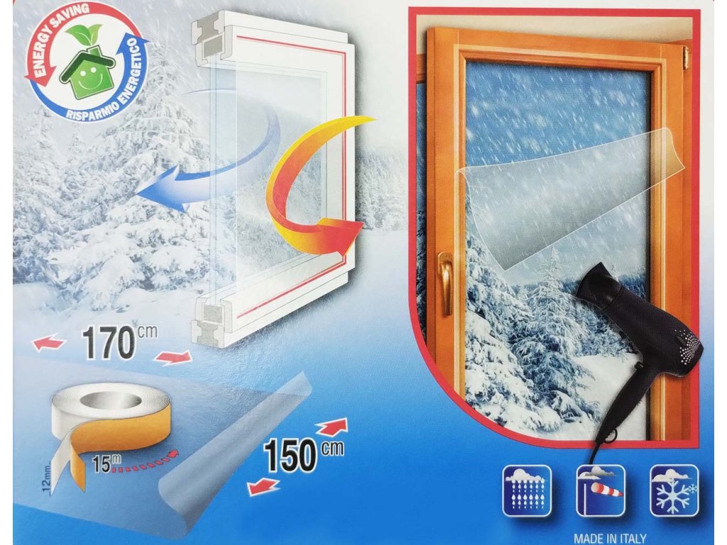 Průhledná izolační fólie na okna, vytvoří vzduchový polštář mezi fólií a sklem a zajistí izolaci podobnou další skleněné tabuli.pomáhá zamezovat průniku chladu do místnosti