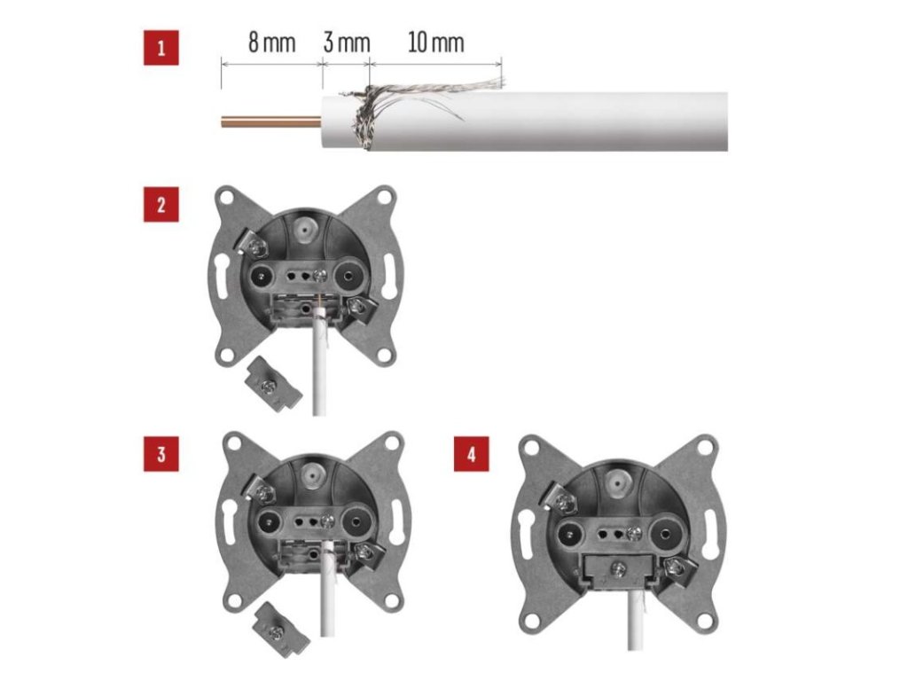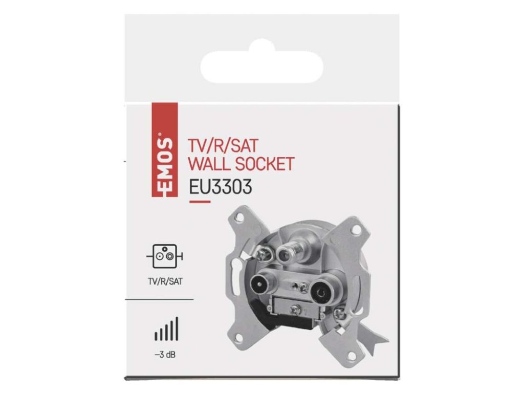 koncový útlum: 3 dB|kryt součástí: ne|označení: TV (2) + R (2) + SAT (3)|prodejní obal: 1 ks, krabice|provedení: koncová|průchozí útlum: neuvádí se|rozměr: 26 × 60 × 60 mm|typ konektorů: IEC + F (female)Obrázky jsou pouze ilustrativní.