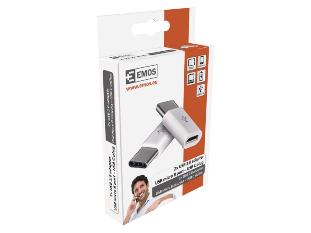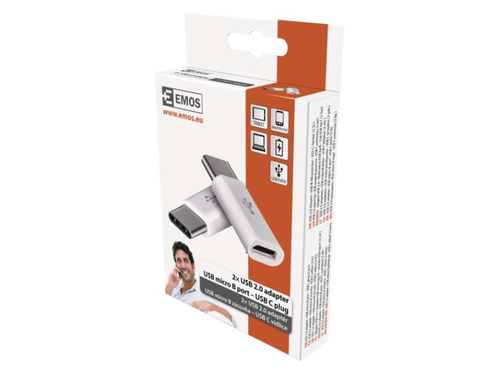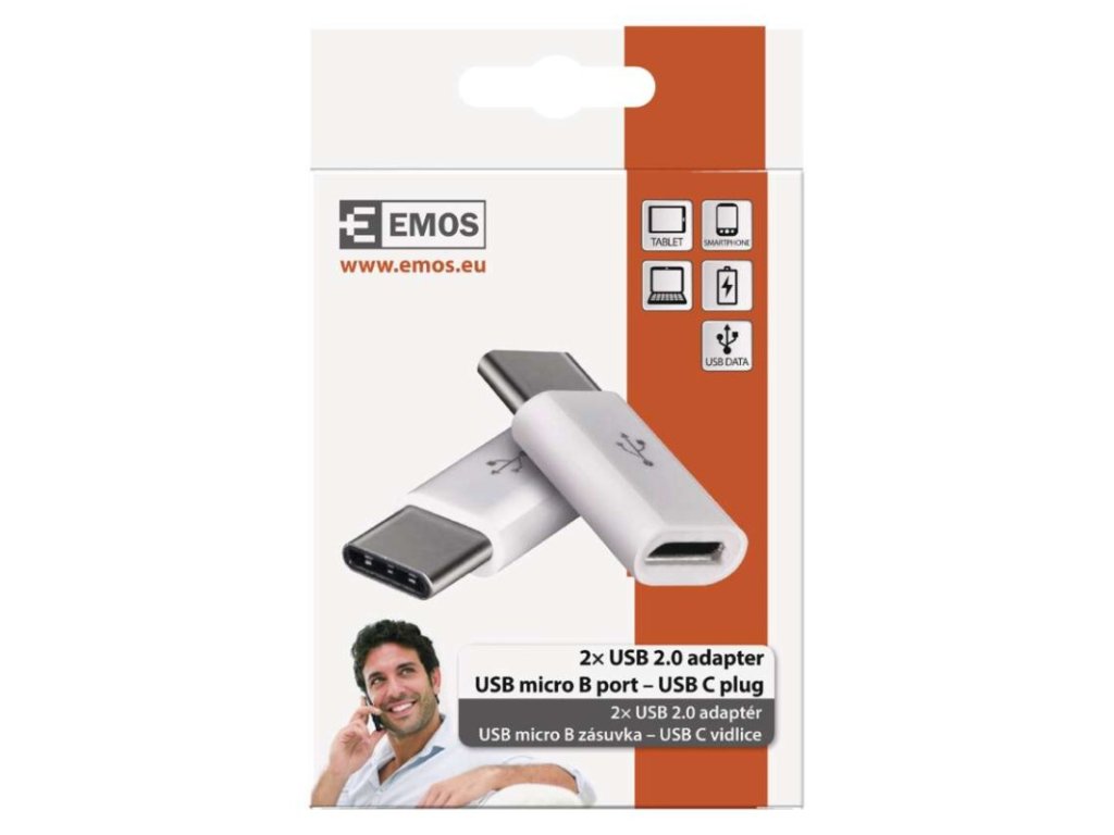 barva: bílá|délka: 0 m|konektory: micro B zásuvka – C vidlice|materiál: PVC|maximální proud: 2 A|maximální výkon: 10 W|použití: nabíjení/data|prodejní obal: 2 ks, krabička|rychlost přenosu dat: 480 Mbit/s (High Speed)|USB verze: 2.0Obrázky jsou pouze ilustrativní.