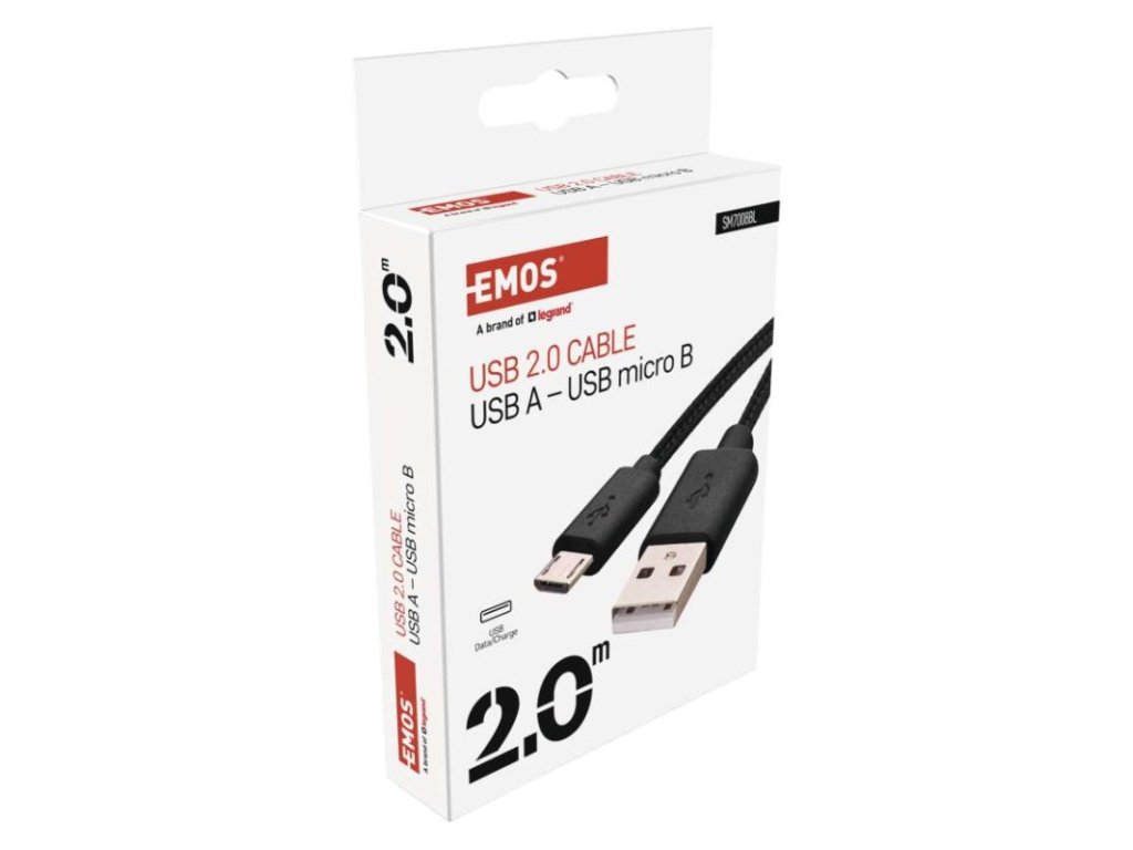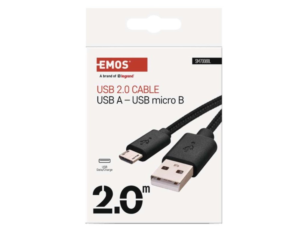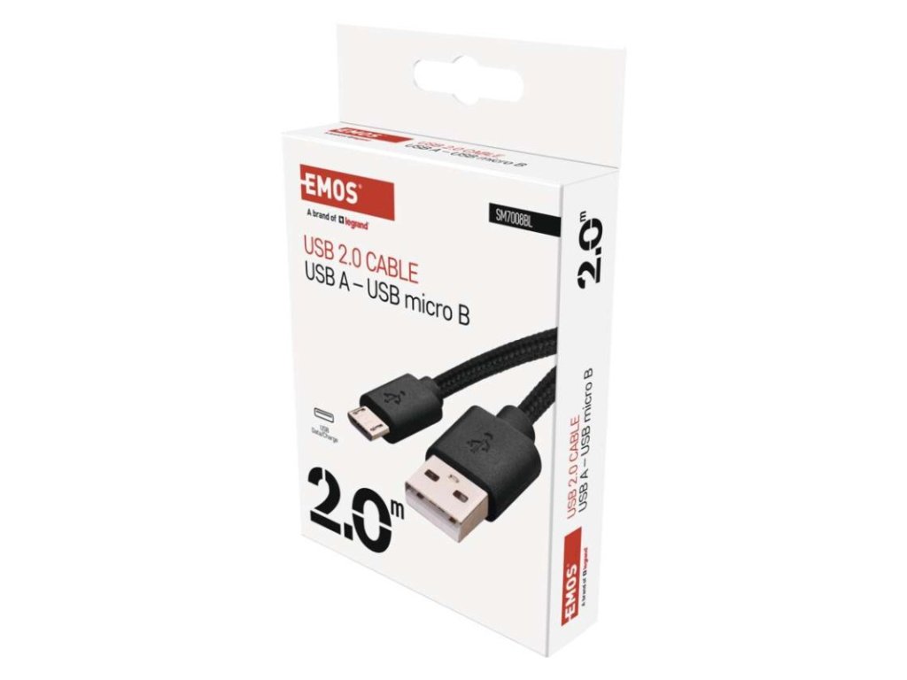 barva: černá|délka: 2 m|konektory: A vidlice – micro B vidlice|materiál: PVC + textil|maximální proud: 2 A|maximální výkon: 10 W|použití: nabíjení/data|prodejní obal: 1 ks, krabička|rychlost přenosu dat: 480 Mbit/s (High Speed)|USB verze: 2.0Obrázky jsou pouze ilustrativní.