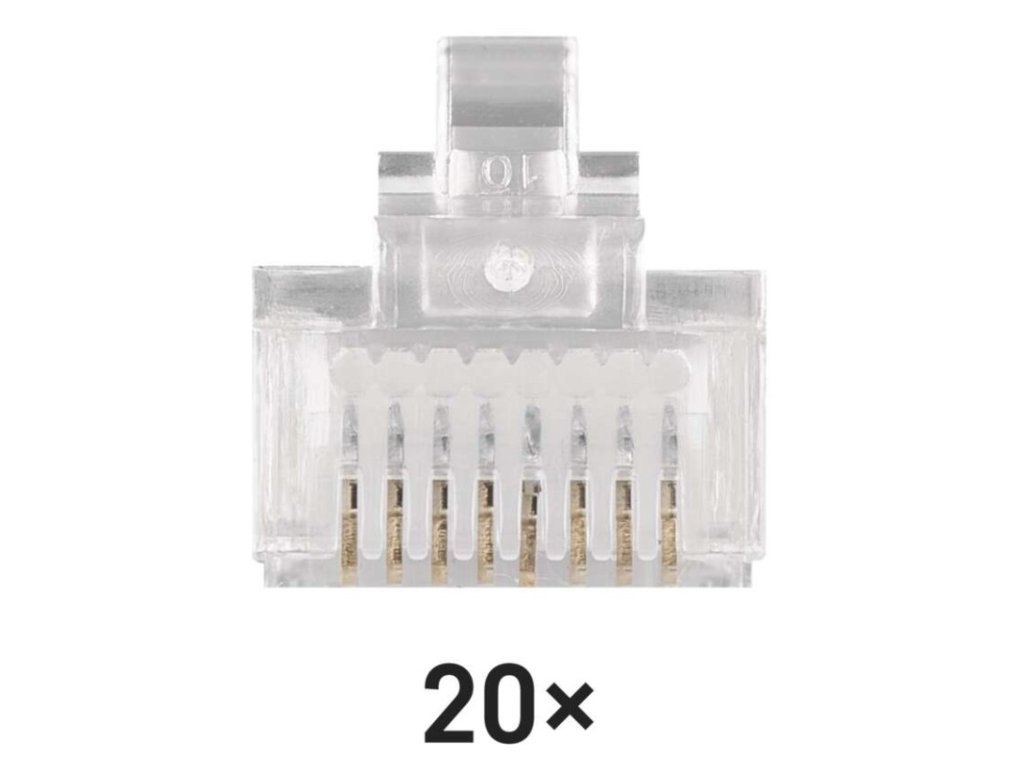 kategorie: CAT5E|materiál konektorů: PE/50 µ zlata - 70 µ nikl|maximální provozní vlhkost: 93 %|min. životnost: 1 000 cyklů zapojení/odpojení|počet konektorů: neuvádí se|použití: pevný drát|prodejní obal: 20 ks, PVC sáček|provozní teplota: -10–60 °C|rozměr: 22 × 12 × 10 mm|skladovací teplota: -40–70 °C|stínění: ano|typ: konektor RJ45 8p8c|určeno pro kabel: FTP, SFTP, F/UTPObrázky jsou pouze ilustrativní.