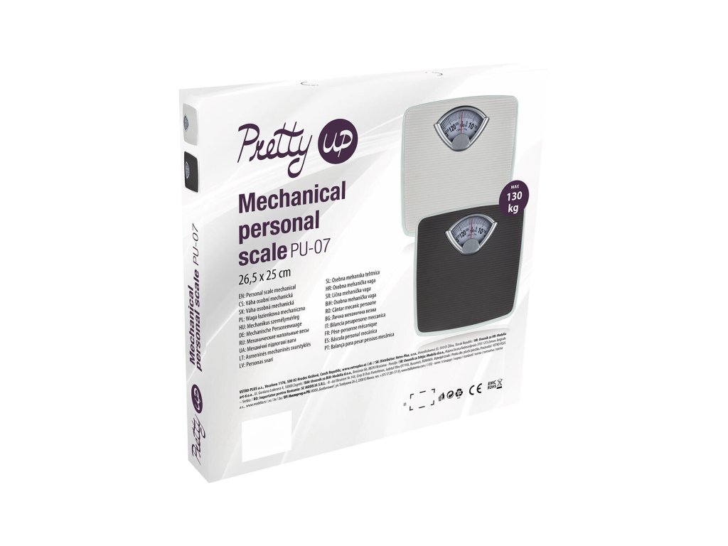Váha osobní 130 kg, mechanická, PU-07, BÍ. nosnost: 130 kg rozměry: 26,5 x 26,5 cm materiál: kov barva: bílá Osobní mechanická váha PU-07, v bílé barvě, je vhodným doplňkem každé domácnosti. Váha má dostatečně velký a dobře čitelný ukazatel a kolečko pro vynulování. Maximální nosnost 130 kg.Obrázky jsou pouze ilustrativní.