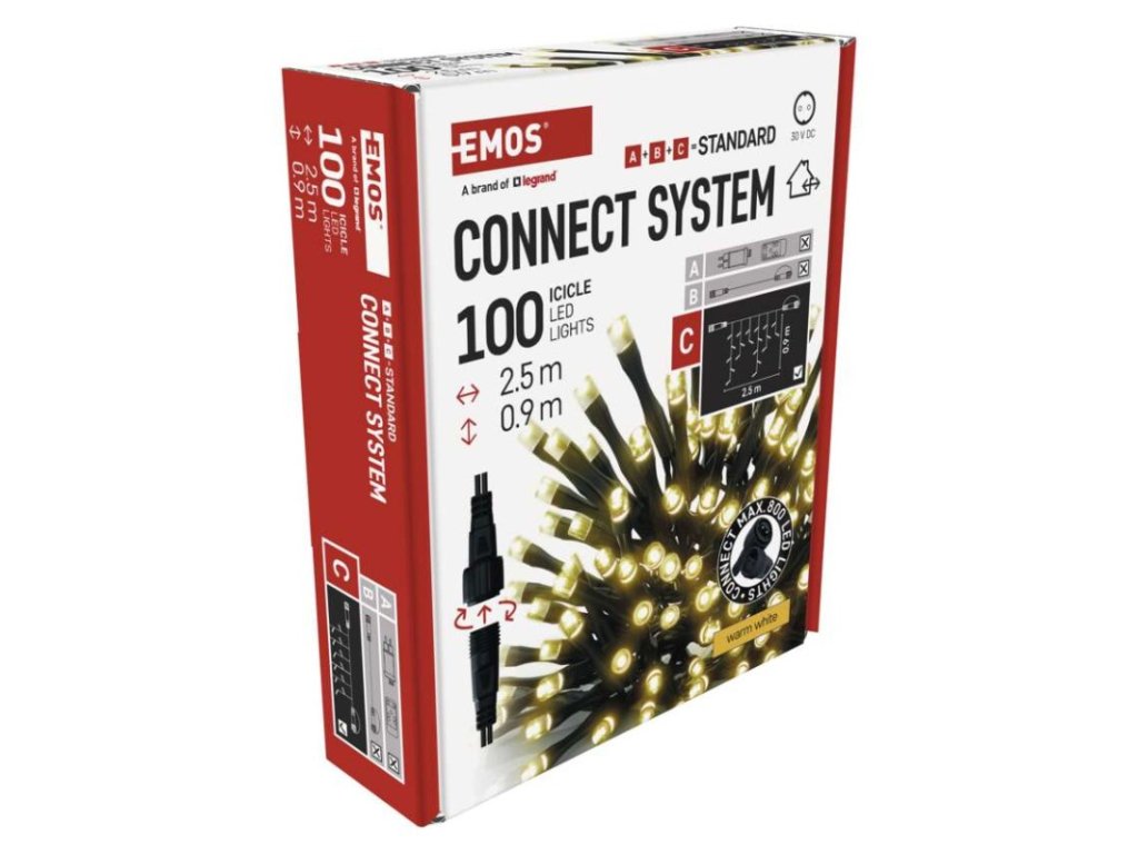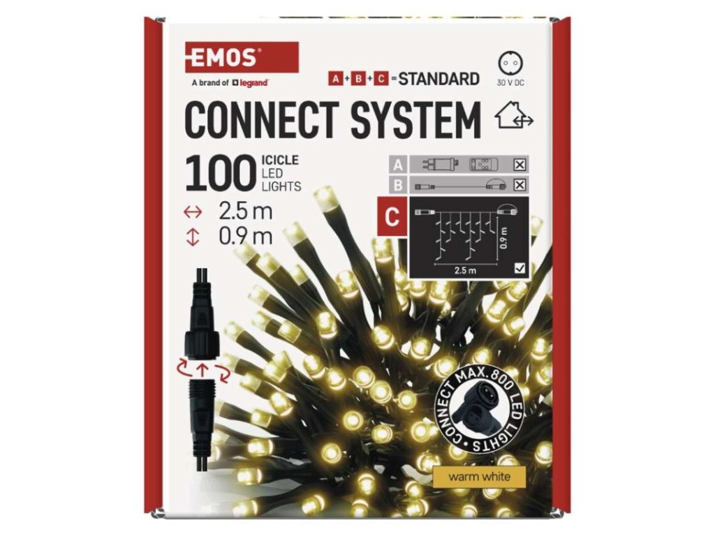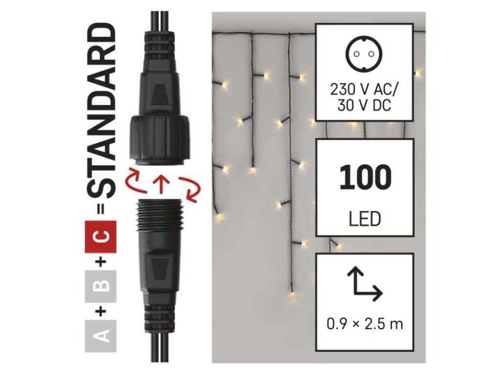 Standard LED spojovací vánoční řetěz – rampouchy, 2,5 m, venkovní, teplá bílá