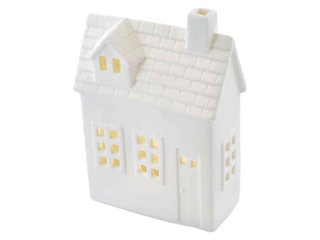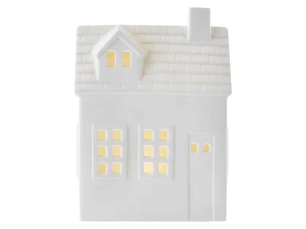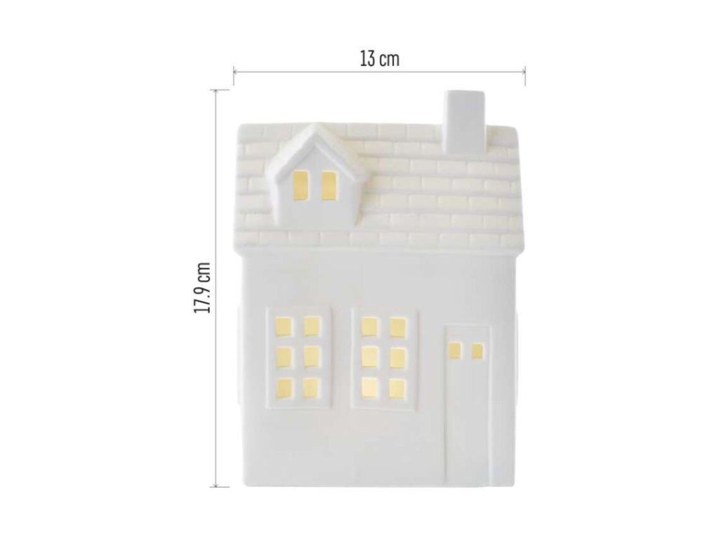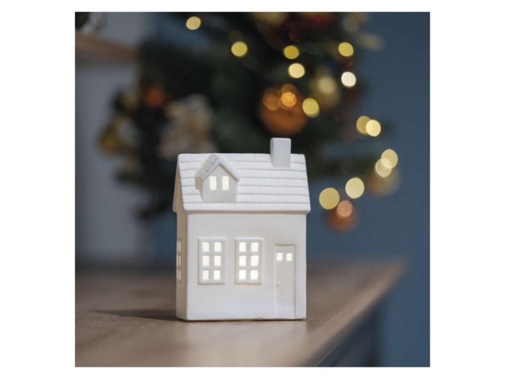 LED keramický domeček, 18 cm, 1x CR2032, vnitřní, teplá bílá, časovač