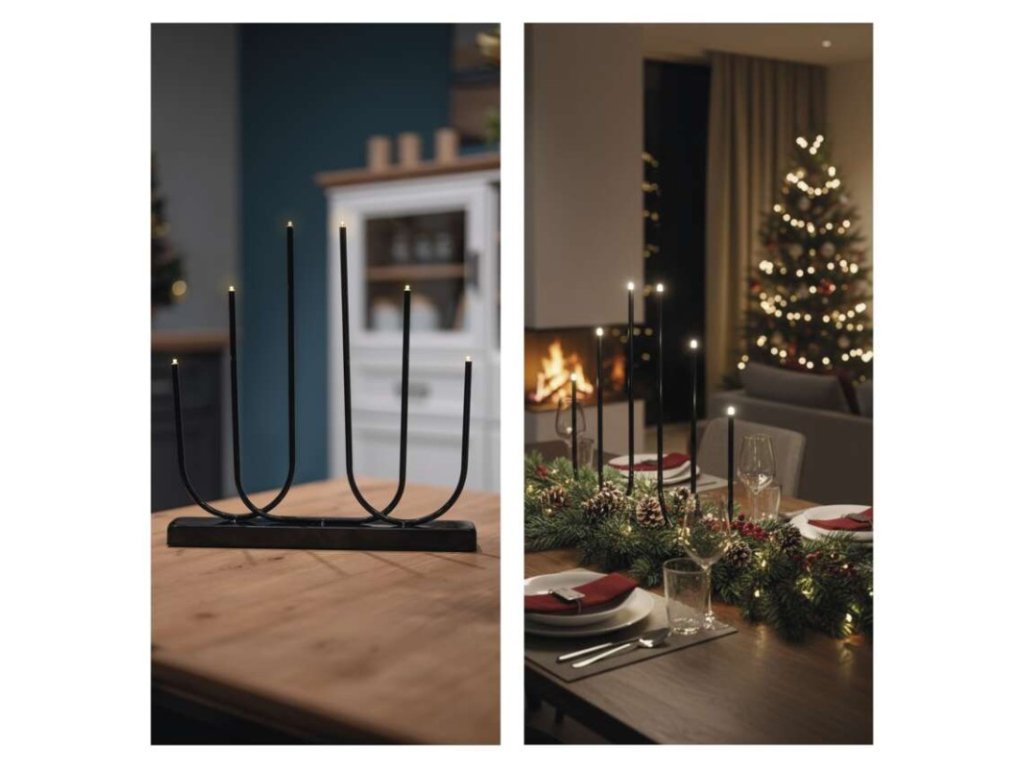 LED svícen kovový černý, 40 cm, 2x AA, vnitřní, teplá bílá