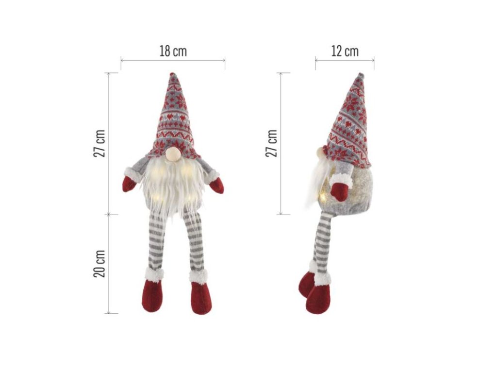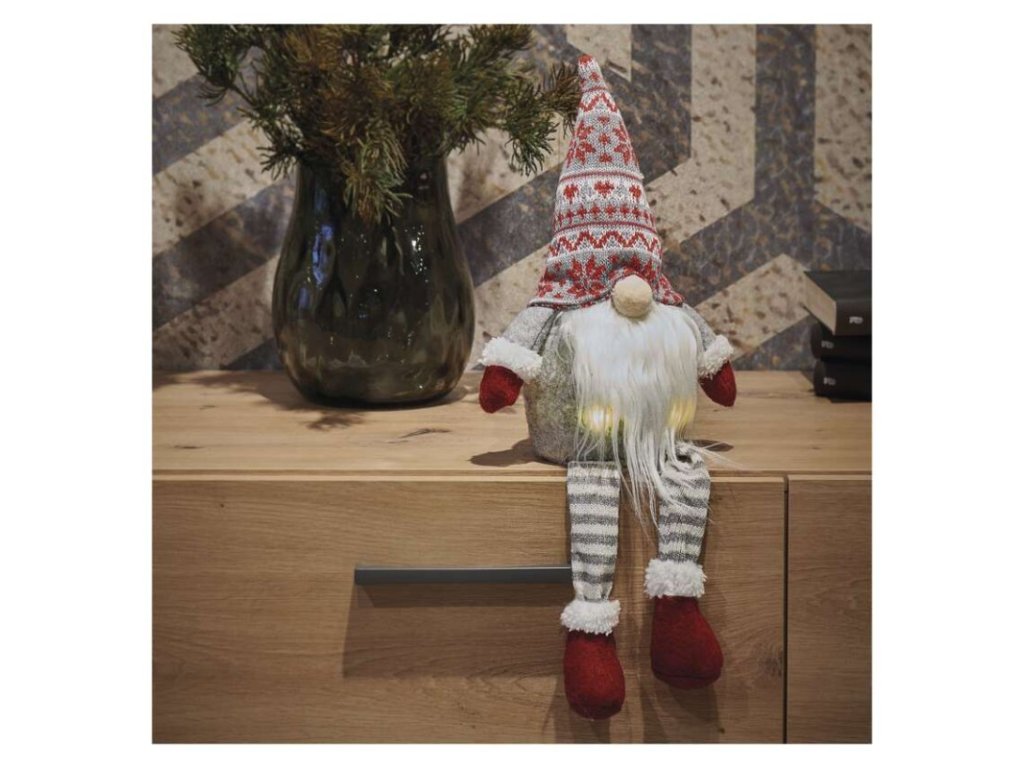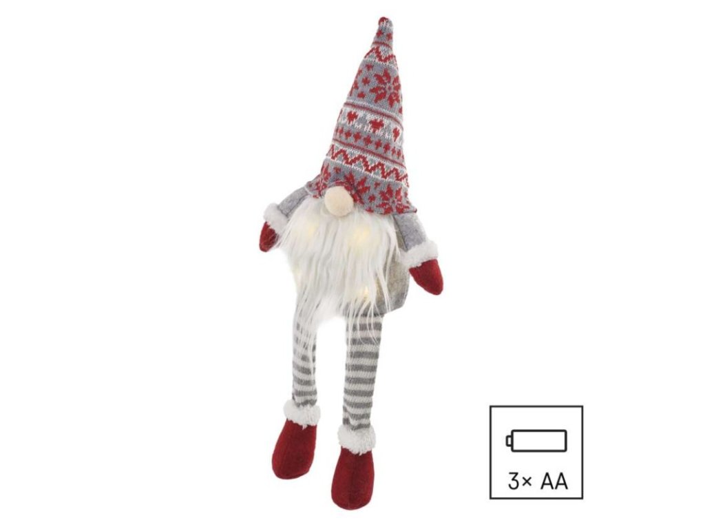 LED vánoční skřítek sedící, 27 cm, 3x AA, vnitřní, teplá bílá
