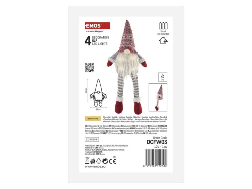 barva drátu: neuvádí se|barva světla: teplá bílá|časovač: ne|dálkový ovladač: ne|délka přívodu: neuvádí se|krytí: IP20|materiál: neuvádí se|počet LED: 4|použití: vnitřní|příkon: 0,22 W|prodejní obal: 1 ks, krabice|produkt: skřítek|rozměr: 18 × 12 × 27 cm|typ napájení: baterie 3× AA (není součástí balení)|vstupní napětí: neuvádí se|výstupní napětí: 4,5 V DC|záruční doba: 2 roky|zdroj svícení: LED|životnost: 10 000 hodinObrázky jsou pouze ilustrativní.