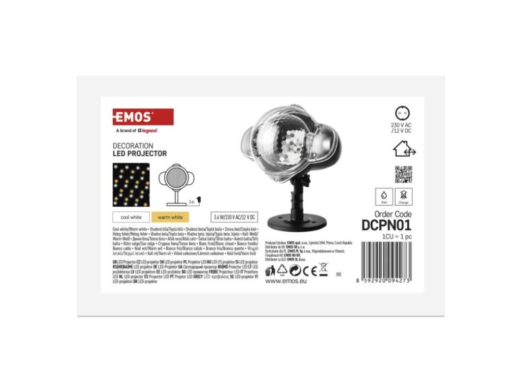 barva světla: studená bílá/teplá bílá|časovač: ne|dálkový ovladač: ne|délka přívodu: 3 m|funkce: rotující světlo|krytí: IP44|materiál: plast|použití: venkovní i vnitřní|příkon: 4,2 W|prodejní obal: 1 ks, krabice|produkt: projektor|technologie: LED|typ napájení: síťový adaptér|vstupní napětí: 230 V~|výstupní napětí: 14 V DC|vzor: hvězdy|záruční doba: 2 roky|životnost: 10 000 hodinObrázky jsou pouze ilustrativní.