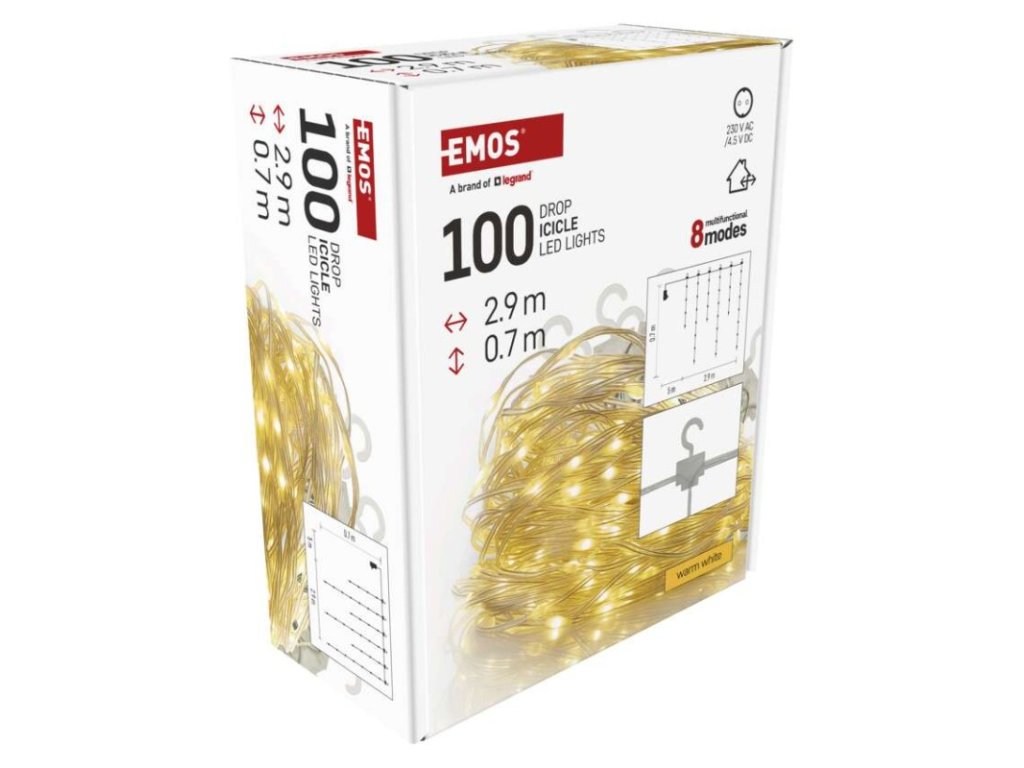 LED vánoční nano řetěz – rampouchy, 2,9 m, venkovní i vnitřní, teplá bílá, programy