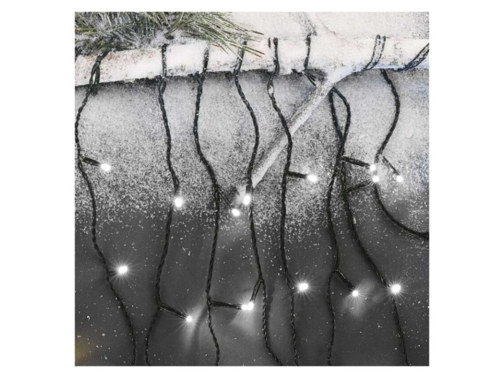 LED vánoční rampouchy, 3,6 m, venkovní i vnitřní, studená bílá, programy
