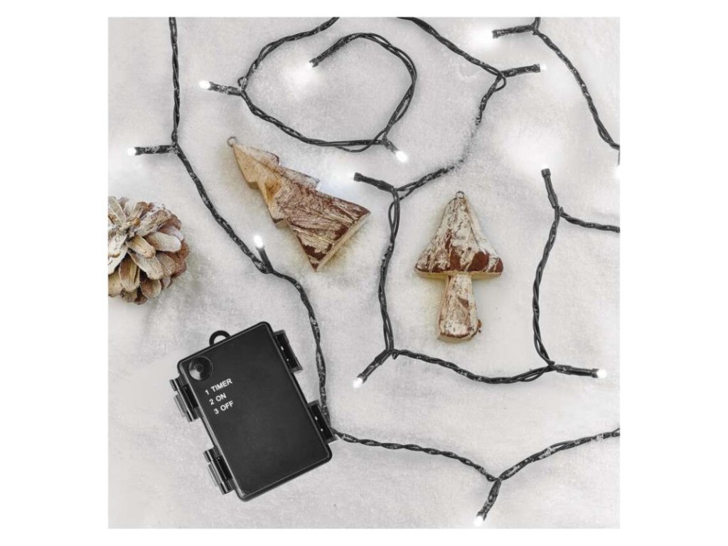 LED vánoční řetěz, 5,6 m, 3x AA, venkovní i vnitřní, studená bílá, časovač