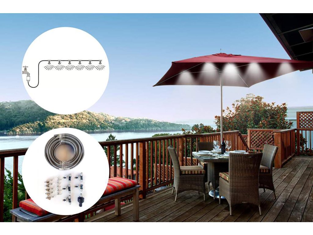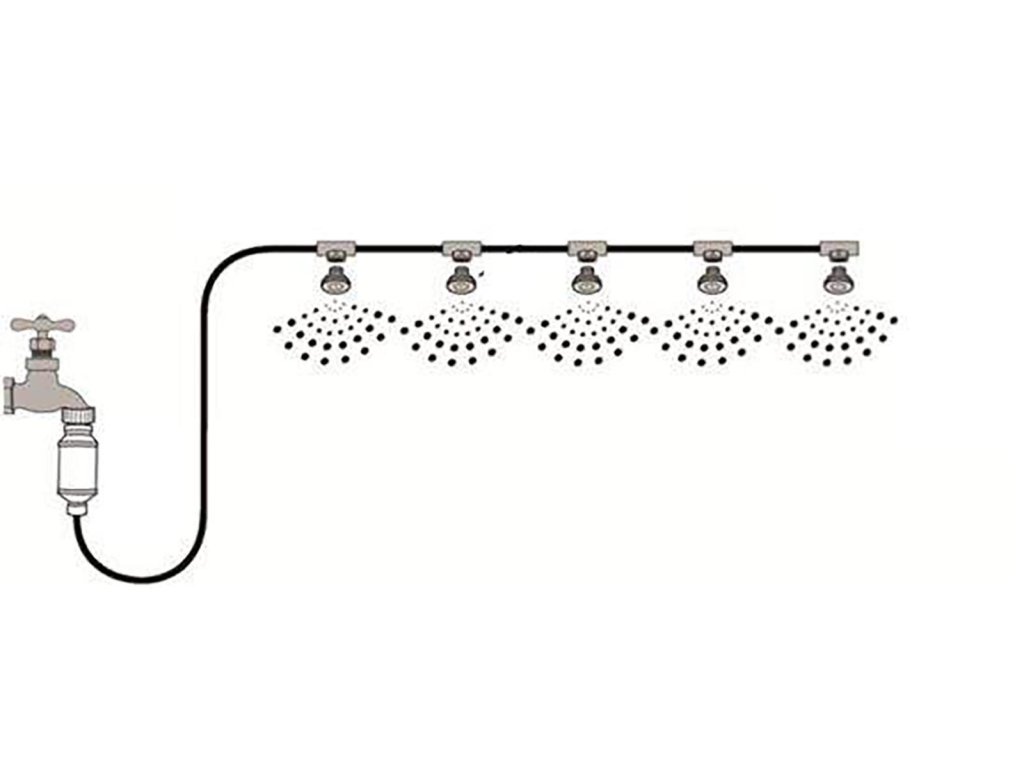 Souprava na vodní mlhu 7,5 m, 5 trysekSada pro vytváření ochlazující vodní mlhy obsahuje 5 mikrotrysek s nastavitelným úhlem působení (z toho jedna koncová), 7,5 metru hadice, jejímž nastříháním je možno umístit trysky dle individuální potřeby, 5 závěsných klipů a adaptér na vodovodní přípojku. Velice rychlou a jednoduchou instalací je možno zvýšit vzdušnou vlhkost v okolí a tím snížit pocitovou teplotu až o 10 stupňů. Vhodné k použití na pergolách, balkonech, terasách, ale i pro zvýšení vlhkosti ve sklenících, nebo prostorech určených pro zvířata. Kvalita fungování závisí hlavně na tlaku v přívodní soustavě, doporučujeme nastavení trysek tak, aby vlhkost nedopadala přímo na osoby či kluzké povrchy, kde je nebezpečí uklouznutí, nebo předměty podléhajícím účinkům vlhka Délka (m): 7,5 | Průměr trubek (mm): 5 x 8 | Barva: Šedá | Hmotnost netto (kg): 0,44 | Hmotnost brutto (kg): 0,46 | Záruka (v měsících): 24 měsíců | Výrobce / značka: HAPPY GREENObrázky jsou pouze ilustrativní.