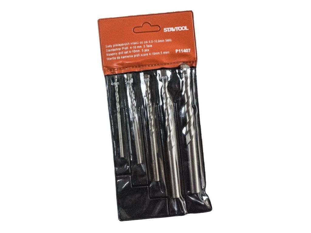 STAVTOOL Sada vidiových vrtáků, válcová stopka | 4-10 mm, 5 dílů, PVC obal