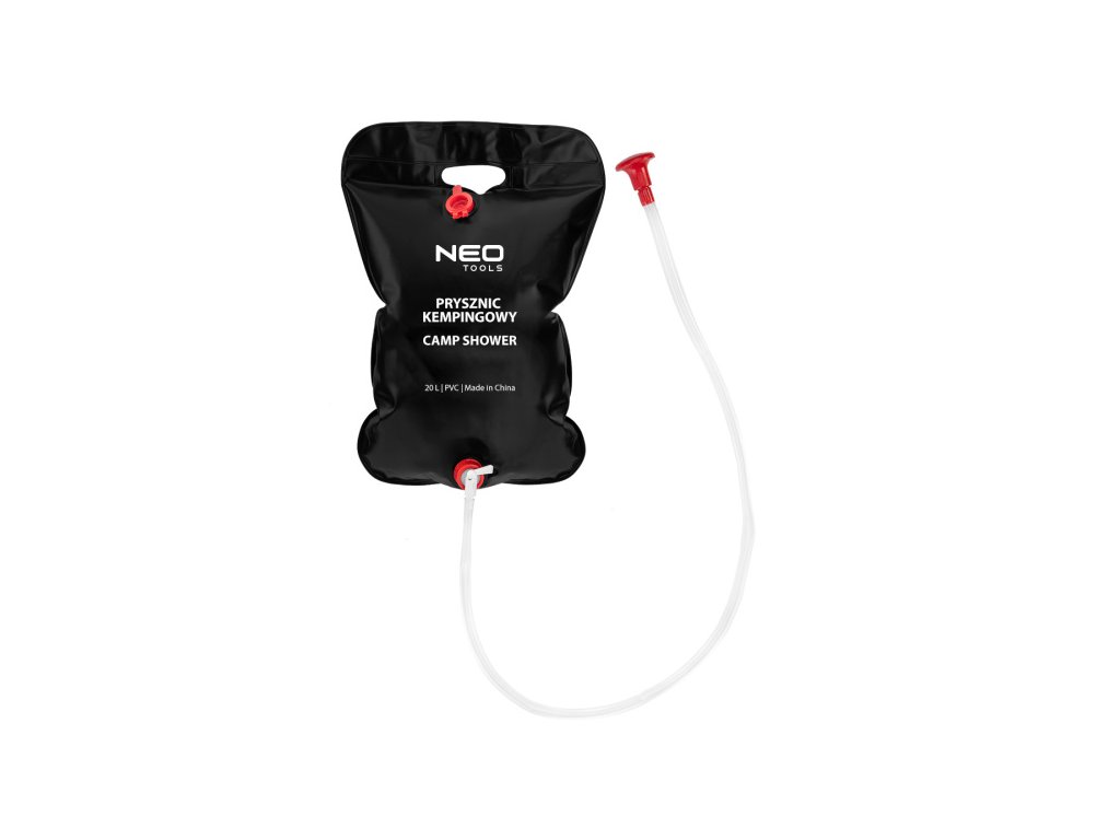 Kempingová sprcha, materiál: PVC, objem 20 l, hmotnost: 400 g, rozměry: 62 x 39 cm, délka hadice 75 cm, vyhřívaná solární energií, s vyztuženou rukojetí, ideální na cesty nebo kempování. Kempinková sprcha 63-164 od společnosti NEO TOOLS je jednoduché zařízení s praktickým využitím. Je vyrobena z PVC a má objem 20 litrů. Její hmotnost je pouhých 400 g, takže se snadno přenáší a přepravuje. Má 70 cm dlouhou hadici, zesílenou rukojeť a sluchátko. Voda se ohřívá pomocí solární energie. Kempinková sprcha je ideální na cestování nebo kempování. Rozměry 62 x 39 cm.Obrázky jsou pouze ilustrativní.