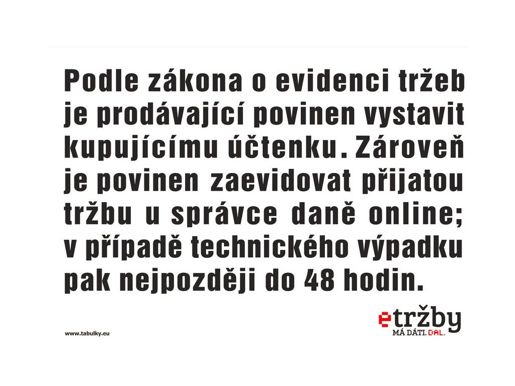 Označení EET 210x148mm - samolepkaTextová tabulka určená k označení provozoven s běžným provozem EET, samolepka A5.