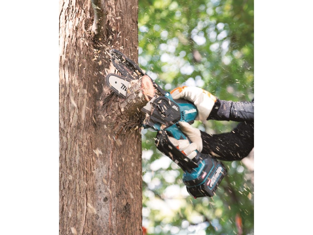 - Lehká a kompaktní prořezávací pila s lištou 150mm fungující na akumulátory Li-ion 40