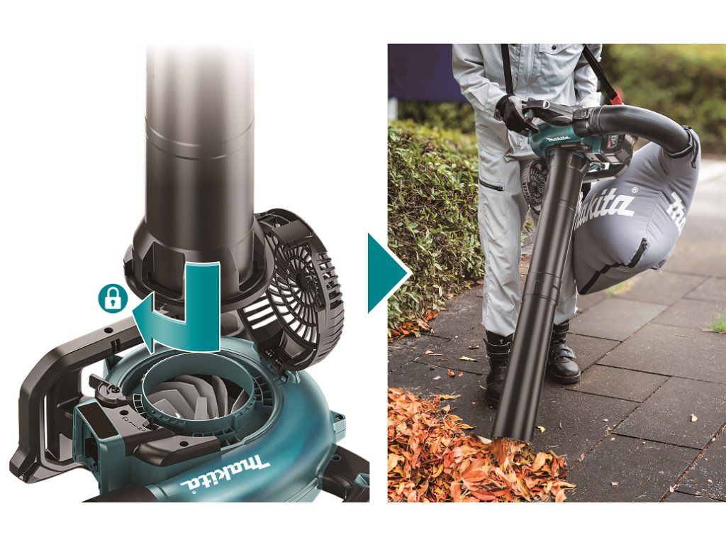- Aku ofukovač umožňující vysávání listí s mulčováním pracující na akumulátor Li-ion 40V
