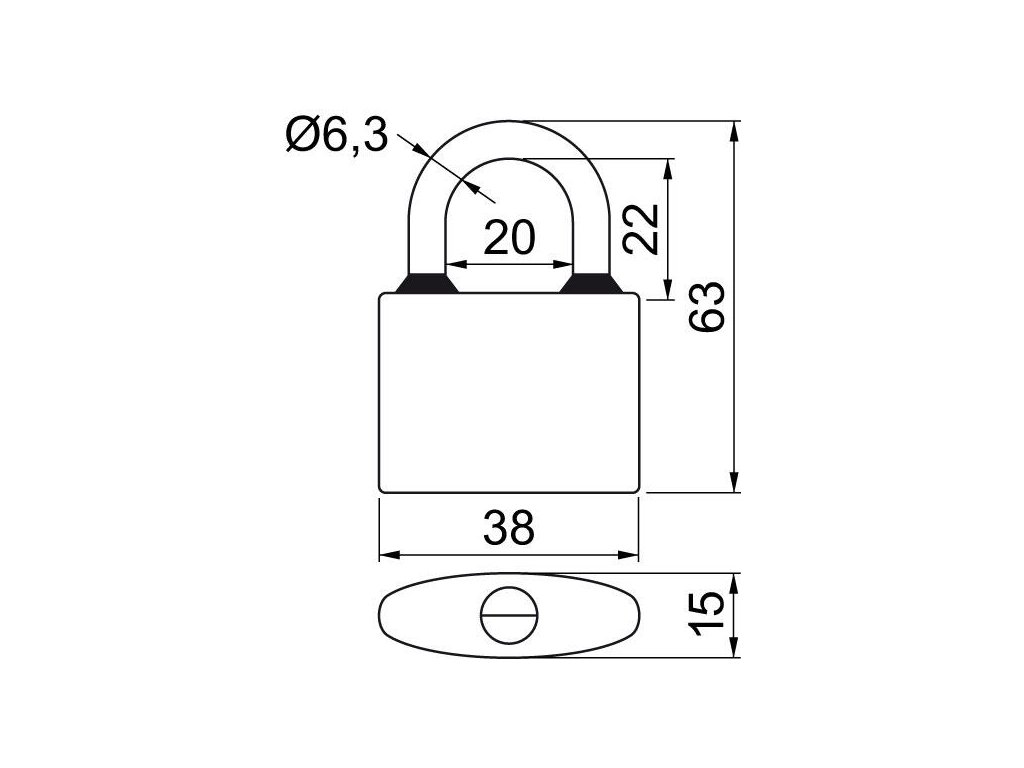 zámek visací OVAL.38 SET 3 zámků na SU 6kl.
