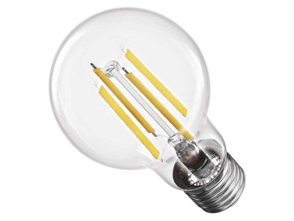barva světla: teplá bílá|energetická třída: D|frekvence: 50/60 Hz|index podání barev (CRI): 80|kompatibilita: –|náhrada za žárovku: 100 W|napětí: 220-240 V~|notifikace do mobilní aplikace: ne|ovládání hlasovými asistenty: ne|patice (uchycení žárovky): E27|počet čipů: 4|počet spínacích cyklů: 25 000|podporované OS: –|přenosová frekvence: –|příkon: 10,5 W|prodejní obal: 1 ks, krabička|protokol: –|řada: FILAMENT|rozměr: 108 × 60 × 60 mm|stmívatelná: ne|světelná účinnost: 145 lm/W|světelný tok: 1 521 lm|technologie: LED|teplota chromatičnosti: 2 700 K|tvar: A60|typ čipů: COB|účiník: 0,50|úhel vyzařování: 360°|záruční doba: 3 roky|životnost: 25 000 hodinObrázky jsou pouze ilustrativní.