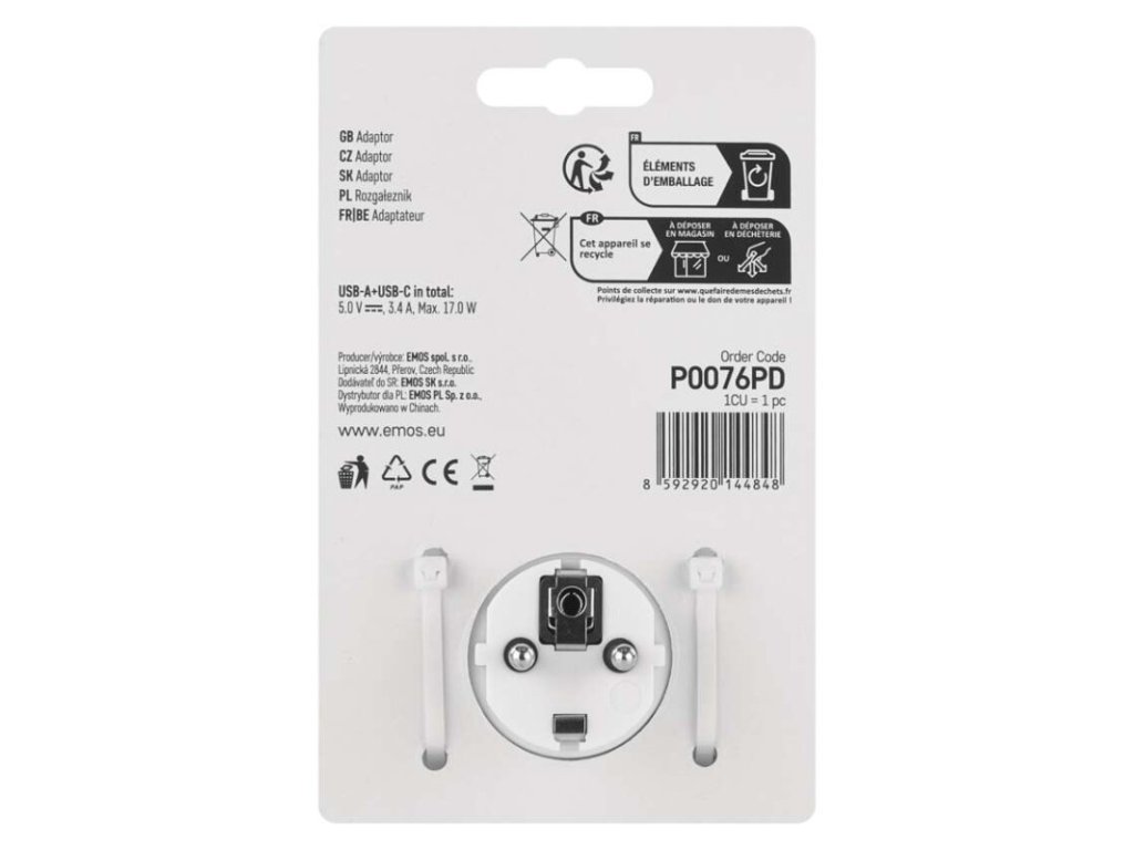 barva: bílá/šedá|dálkový ovladač: –|dětské clonky: ano|dosah signálu: –|easy learning: ne|krytí: IP20|materiál: plast|max. zátěž: 3 680 W|možnost ovládání: ne|napětí/proud: 250 V~/16 A max.|počet pólů: –|počet zásuvek: 2× 2P + PE|pozice ochranného kontaktu: –|přenosoná frekvence: –|prodejní obal: 1 ks, závěs|produkt: rozbočovací zásuvka 2× + 1× USB-A (QC 20 W) + 1× USB-C (PD 20 W)|typ: FRENCH|venkovní použití: ne|vypínač: neObrázky jsou pouze ilustrativní.