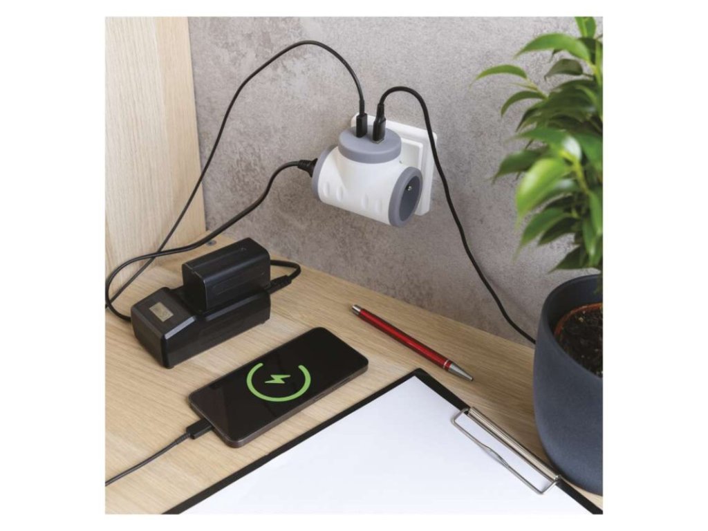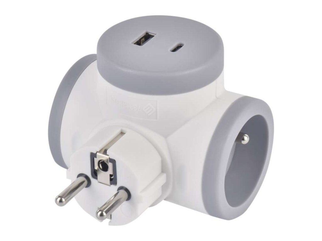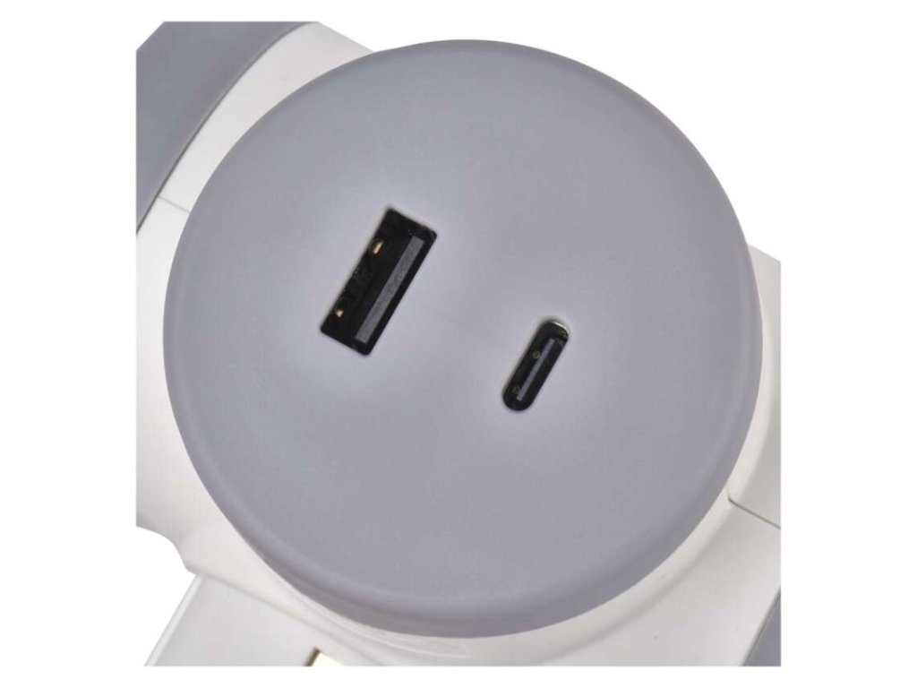 Rozbočovací zásuvka 2×, 1×USB-A+1×USB-C, bílo-šedá